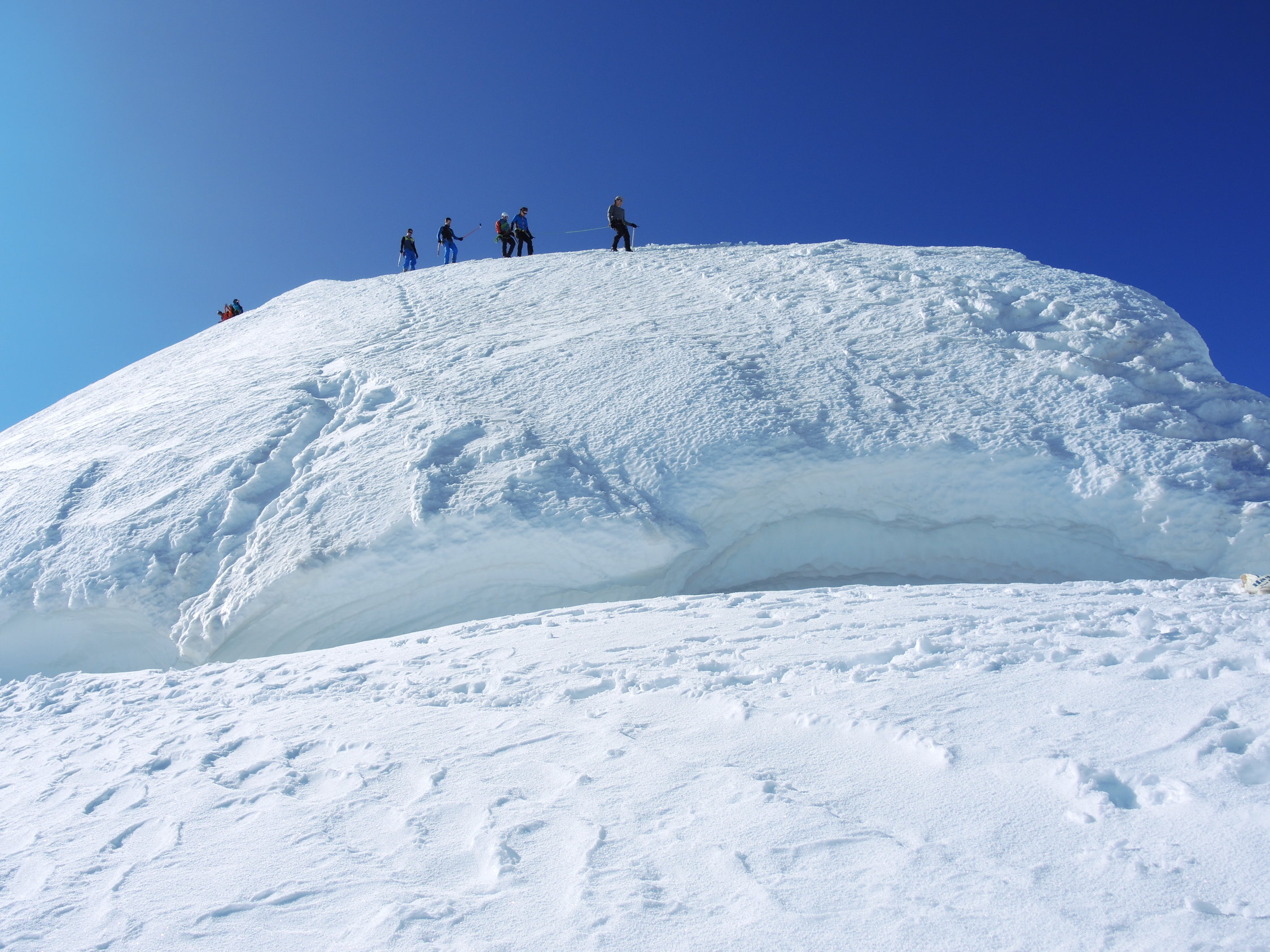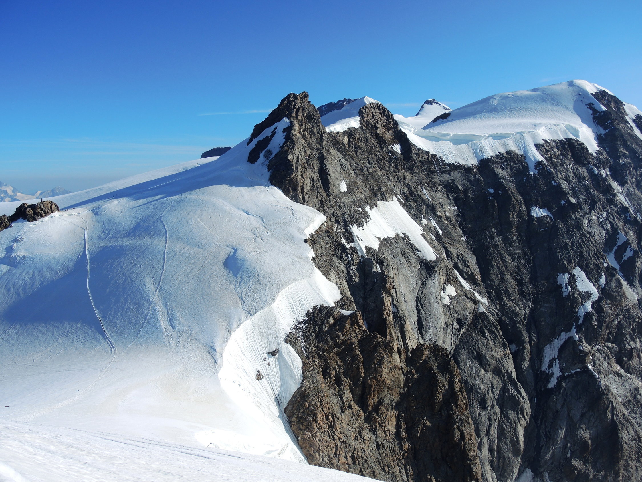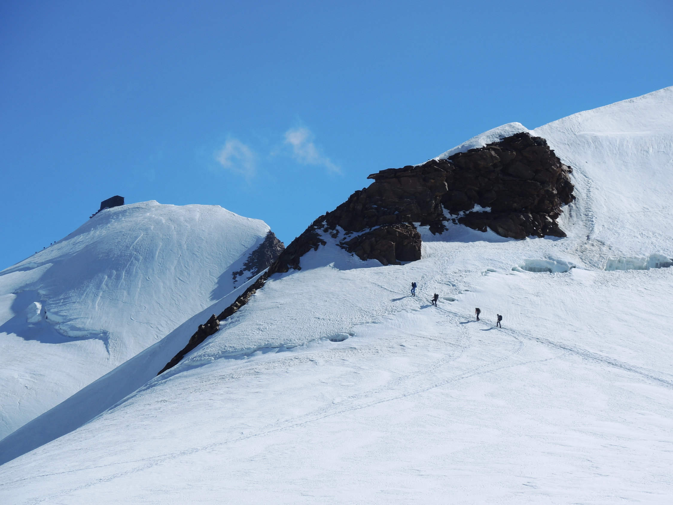 Die Hütten Mantova und Gnifetti waren beide ausgebucht, es waren sehr viele Bergsteiger an allen Gipfeln unterwegs, besonders an den leichten 4000ern. Es war die perfekte Woche für Hochtouren im Gebiet! Auch der Abstieg zur Monte Rosa-Hütte hatte beste Verhältnisse, selbst unser Bergführer hat geschwärmt.