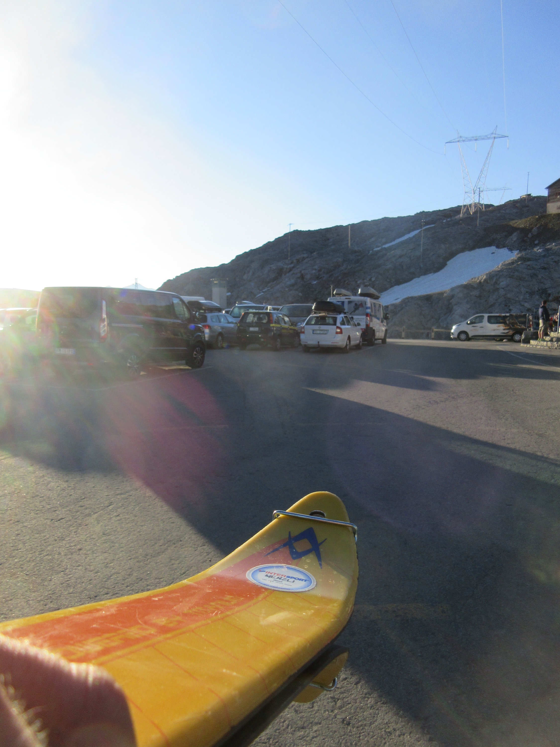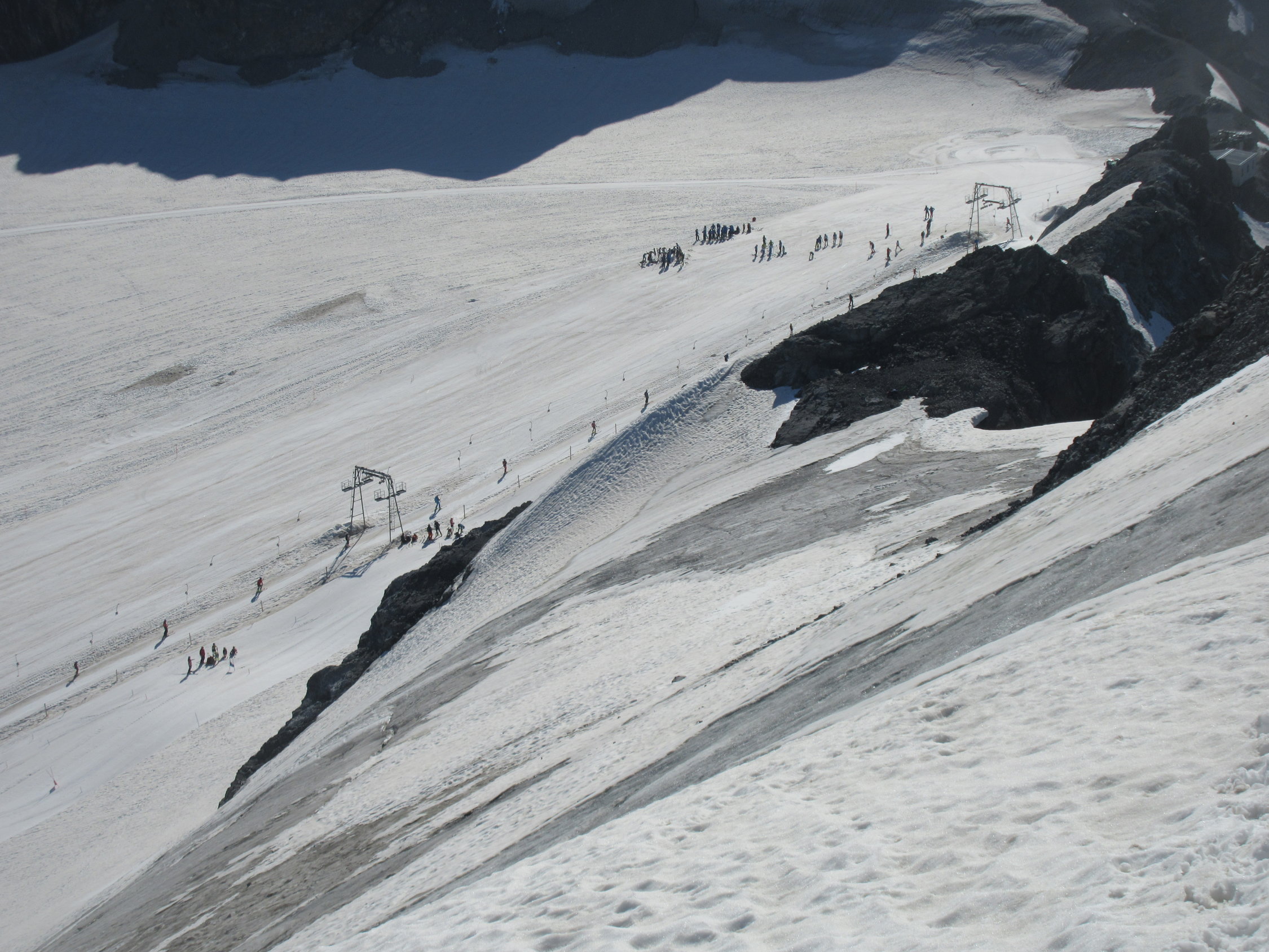Fand (dank x-tra Steigerei auf Firnflanke) einen defekten Liftbügel im Schnee, wollte ihn als Souvenir mitnehmen, aber Personal "beschlagnahmte" es auf Trincerone. Dafür aber kiloweise (!) lokale Steine, in allen Farben, im Rucksack mitgeschleppt :D