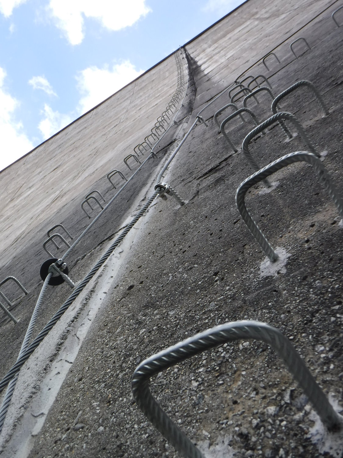 Über den Sinn von Technosteigen gibt es sicherlich unterschiedliche Meinungen. Man sollte sie so akzeptieren wie Kletterhallen. Dann aber auch so bezeichnen. Denn sie bieten auch kaum Vergleichbarkeit mit Klettersteigen. Deutlich wird dies bei der Bewertung von Schwierigkeiten. Bekanntlich haben wir dafür im deutschsprachigen Raum 4 verschiedene Skalen, nämlich die nach Schall, Hüsler, Werner und nach Alemania, die sich in etwa vergleichen lassen. Jedoch diese anwenden zu wollen auf das Besteigen von Gittermasten, Schornsteinen, Turmdrehkränen, Sendemasten, Wassertürmen, Staumauern, Burgtürmen, usw. kommt einer erheblichen Sache dabei nicht nach: und zwar der mentalen Bewertung, wie gesundheitliche Eignung von Schwindelfreiheit und „Höhenangst“.