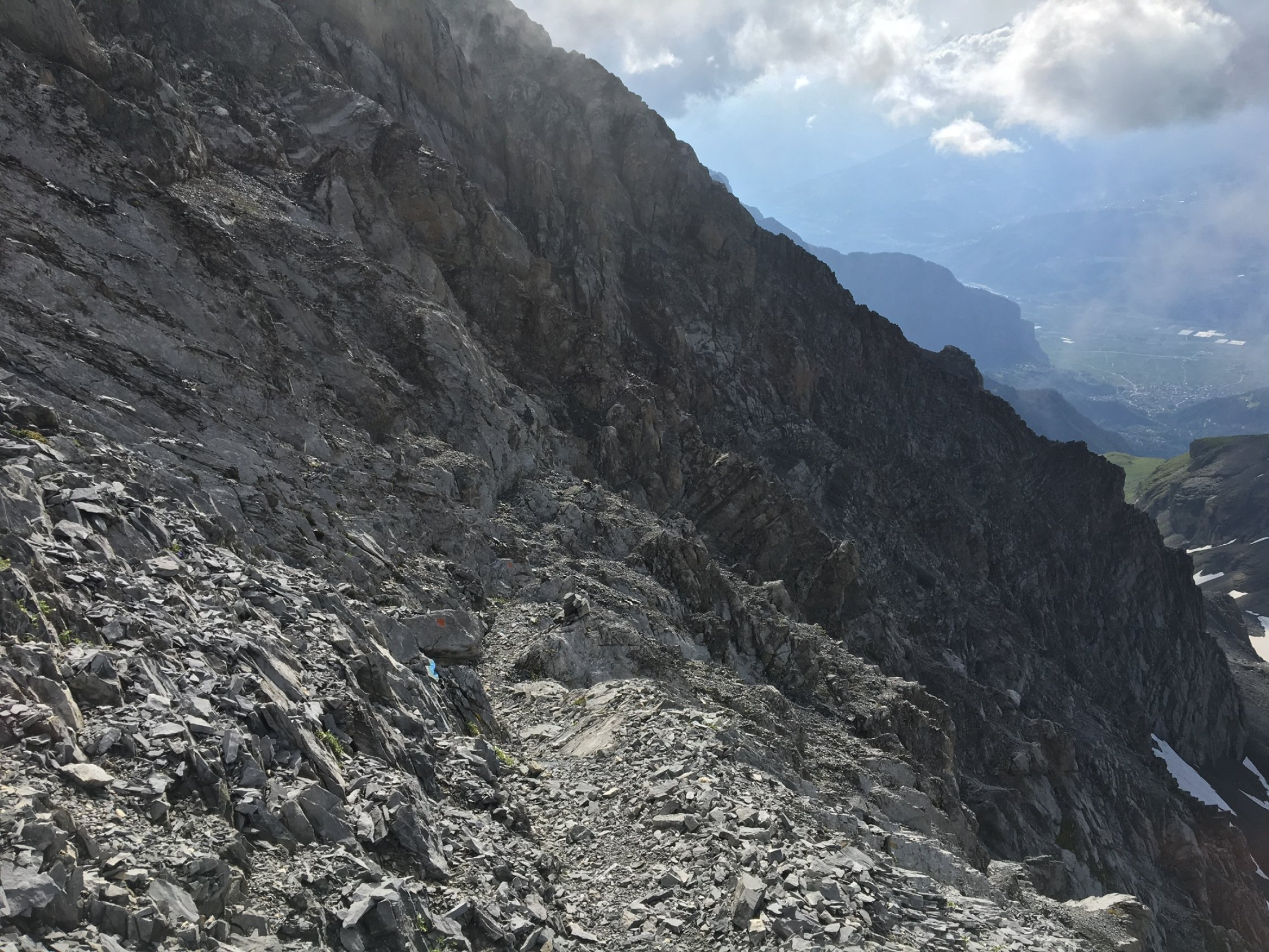 Schöne Vormittagstour, mit Aufstieg über Saille und Abstieg via Alp Chamontse, dann via La Gotte und Patiers retour nach Ovronnaz zu schöner Rundwanderung verbindbar. Hatte den Grand Muveran für mich allein, T5/T6 Bewertung für die Südwand Traverse ist ok, Trittsicherheit und Schwindelfreiheit ist zwingend. Weg(lein) zwar gut markiert, stolpern hätte aber in den 400 m der Querung fatale Folgen. Cab. Rambert - Gipfel mit je 50 min recht kurzweilige Angelegenheit.