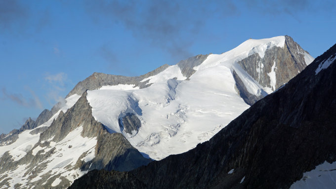 Das letzte Mal war ich in 1983 hier oben und um zu sehen wie auch hier der Gletscher sich zurückgezogen hat ist bestürzend. Man studiere die letzten 2 Bilder. AUch am Oberaarjoch hat sich einiges geändert. In 1983 stiegen wir direkt vom Firn auf der Leiter, jetzt muss man geschätzte 40 Höhenmeter über Schutt hinauflaufen, also kann man vermuten, dass der Gletscher hier etwa 40 Meter an Mächtigkeit verloren hat.