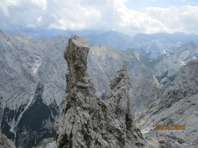 Was die Anforderungen der beiden Teilabschnitte anbelangt, so liegen diese meiner Meinung nach in etwa gleichauf. In der Etappe Osterfelderkopf - Biwak befindet sich die Mehrheit der schwierigeren Stellen, dafür sind aber auch mehr Drahtseile und Eisentritte vorhanden. Der zweite Abschnitt Biwak - Gipfel weist merklich weniger künstliche Hilfsmittel auf, d.h. es muss öfter frei geklettert werden. Die Verfolgung der perfekten Linie erfordert hier gelegentlich ein geschultes Auge.