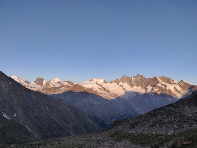 Zustieg früh morgens um 3.20 Uhr von Saas Almagell, zurück dort nach gut 13 Stunden.