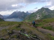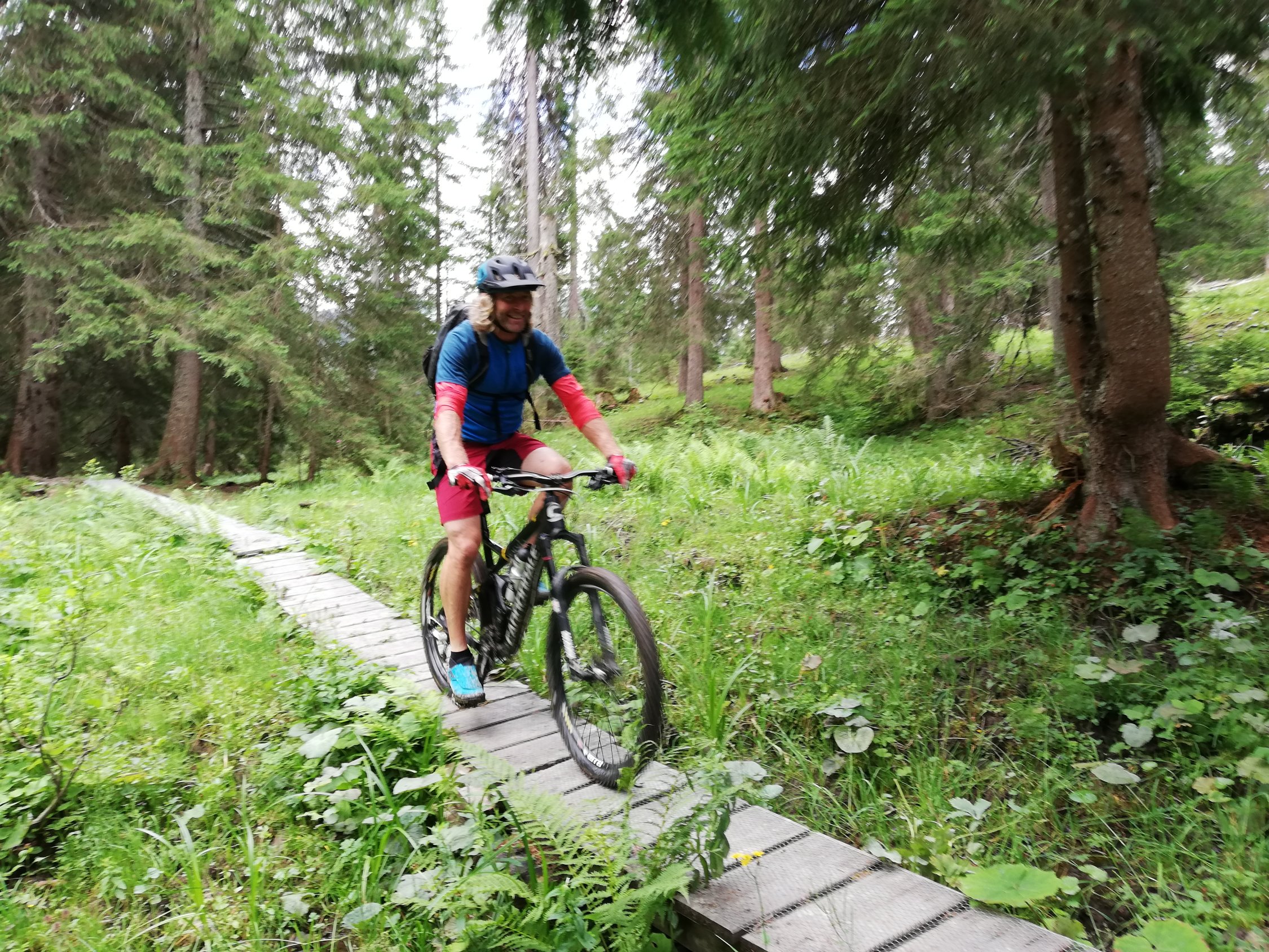 Von Feldkirch Triesnerberg, Pfälzerhütte, Schesaplanahütte, Gafalljoch, Lünersee, Feldkirch Von Feldkirch geht es ins Liechtenstein auf den Triesnerberg. Durch den alten Tunel abfahren zu Stücka. Dann in das Tal hinein und die alte Militärstrasse hinauf zur Pfälzerhütte. Von dort teils fahrend, schiebend und tragend zum Barthümeljoch. Dann Abstieg/Abfahrt zur Fläscher Alp (Maienfelder Egg) und weiter über teils schöne Trails zur Forststrasse wo es zur Schesaplana Hütte geht.