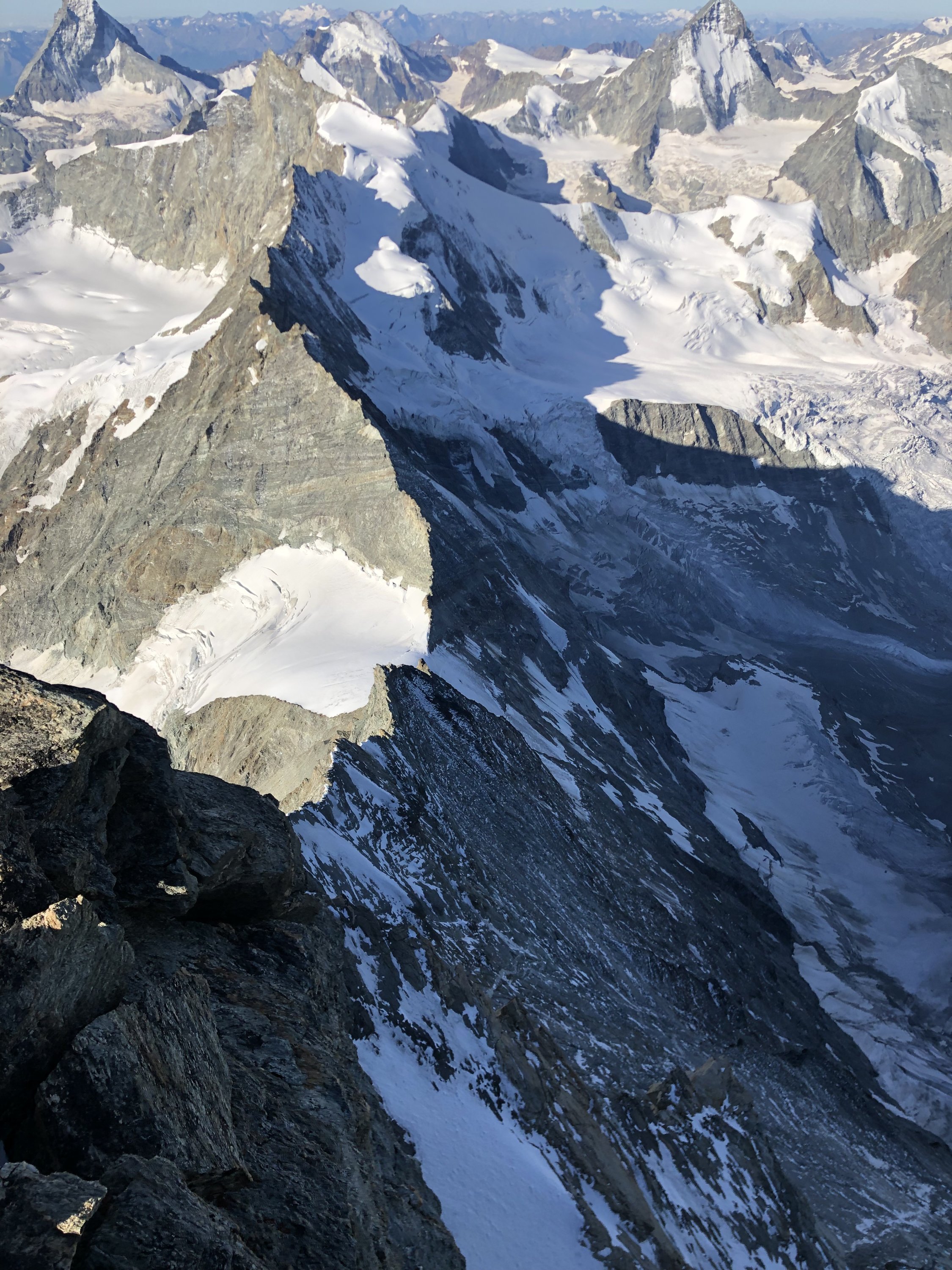 Guter Übergang von Rothornhütte via Schalihorn in 7h andere Seilschaften ca. 8-9h. Biwak war mit 11 Personen übervoll und die Nacht weniger ruhig. Schaligrat in 4h durchstiegen andere Seilschaften ca. 6h.