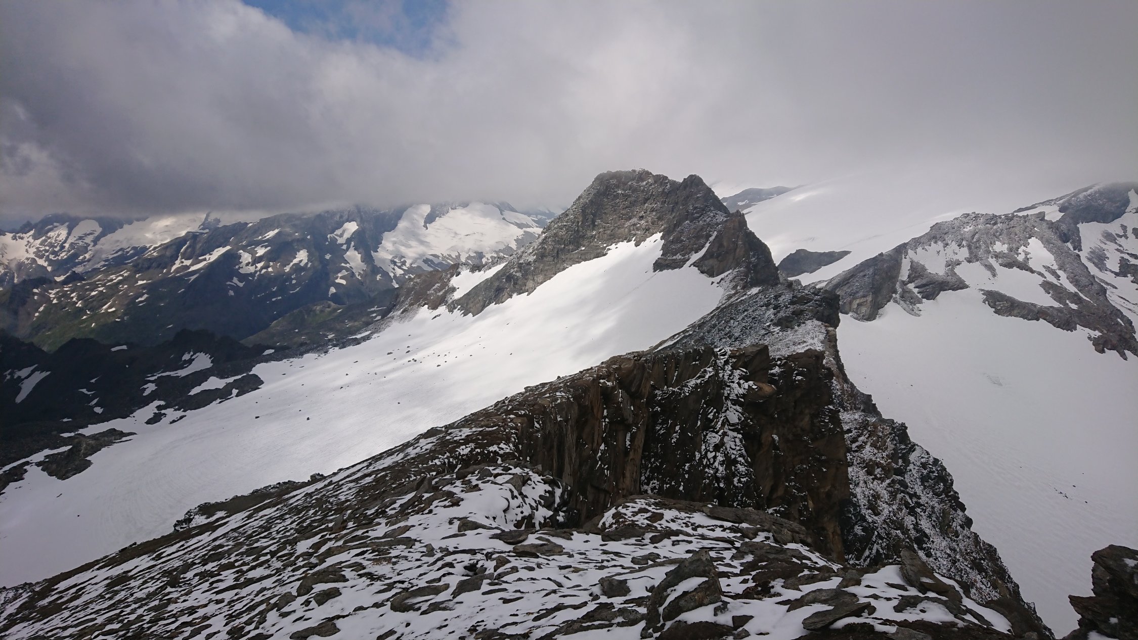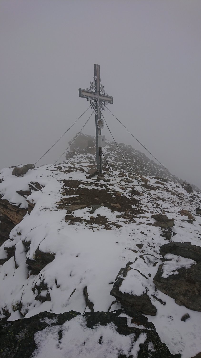 Bei der Überschreitung hat es aufgemacht. Bis auf etwas Nieselregen dann trocken.