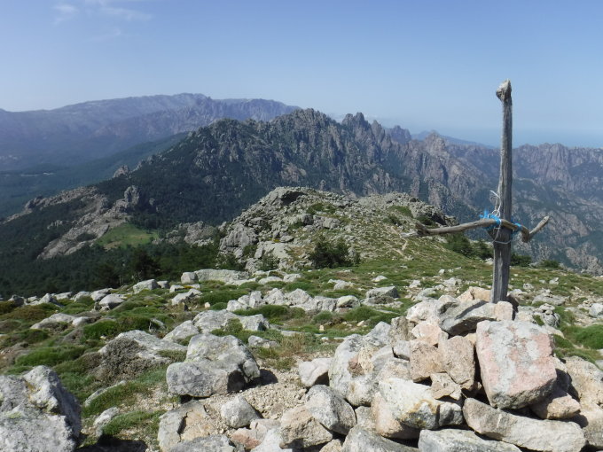 Vom Doppelgipfel hat man Panorama-Sicht zur nahen Bavella-Gruppe (morgiges Ziel), Incudine, Montagne de Cagna und zum Golf von Porto-Vecchio.