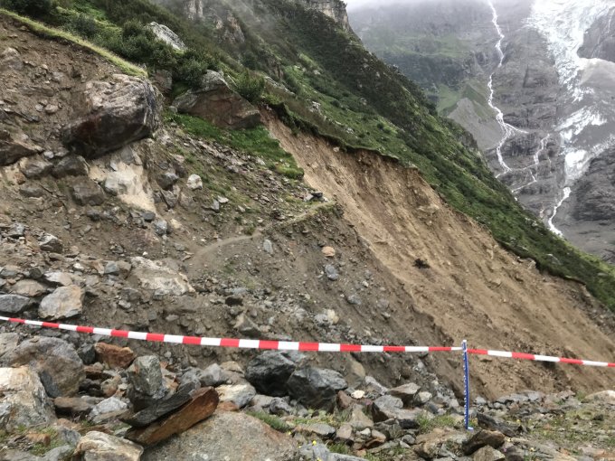 Zur Route auf das Strahlegghorn keine Ergänzungen zu bestehenden Berichten. Foto update zum Hüttenzustieg nachdem ein Teil des Zustieges weggespühlt wurde. Im Bereich des grossen Grabens nach der Bäregg wird ein neuer Wegteil angelegt. Aktuell Infos auf der wenpage der Hütte.