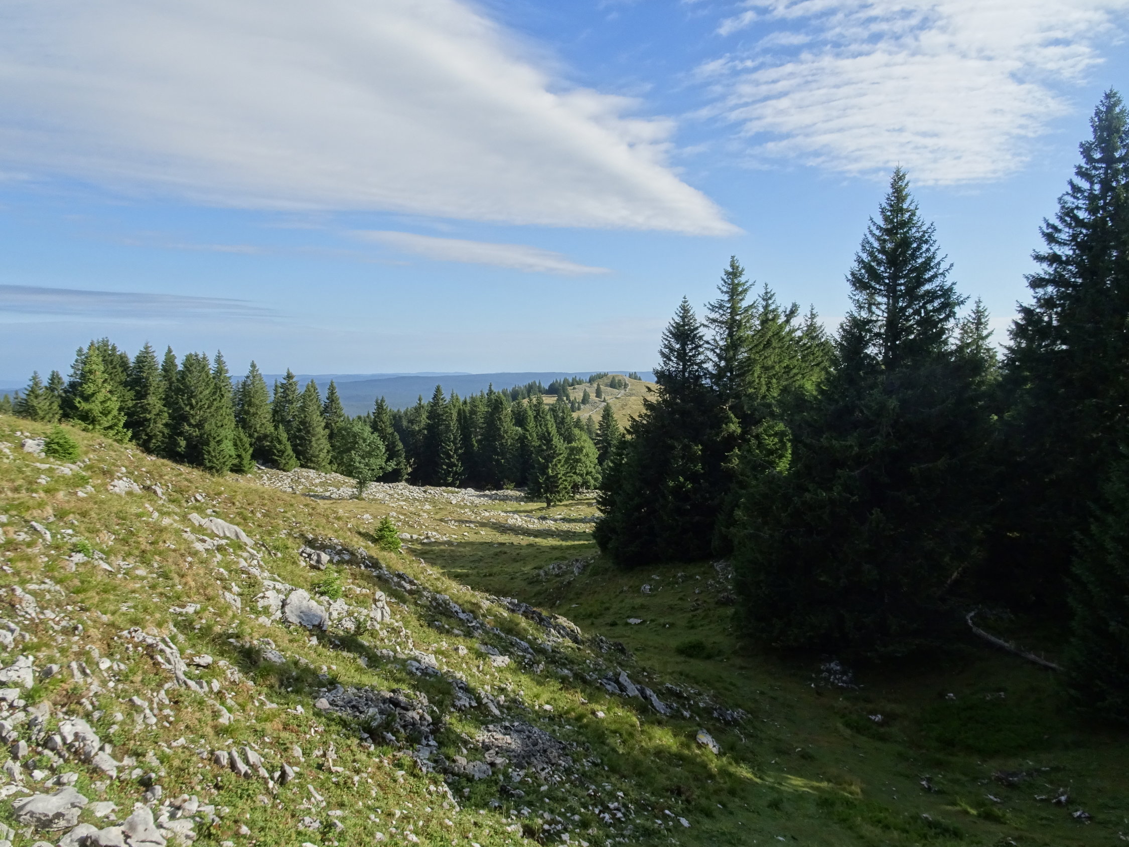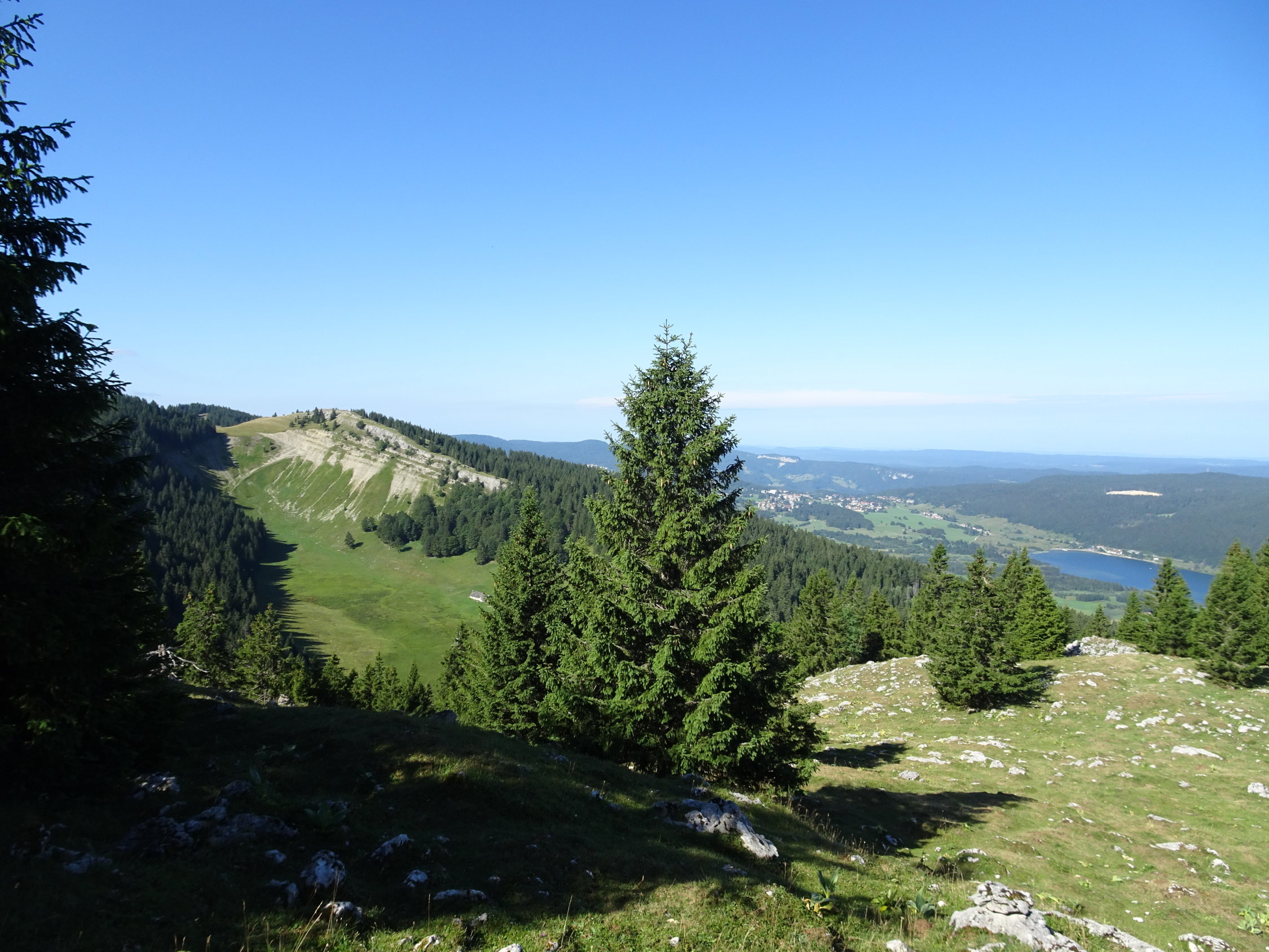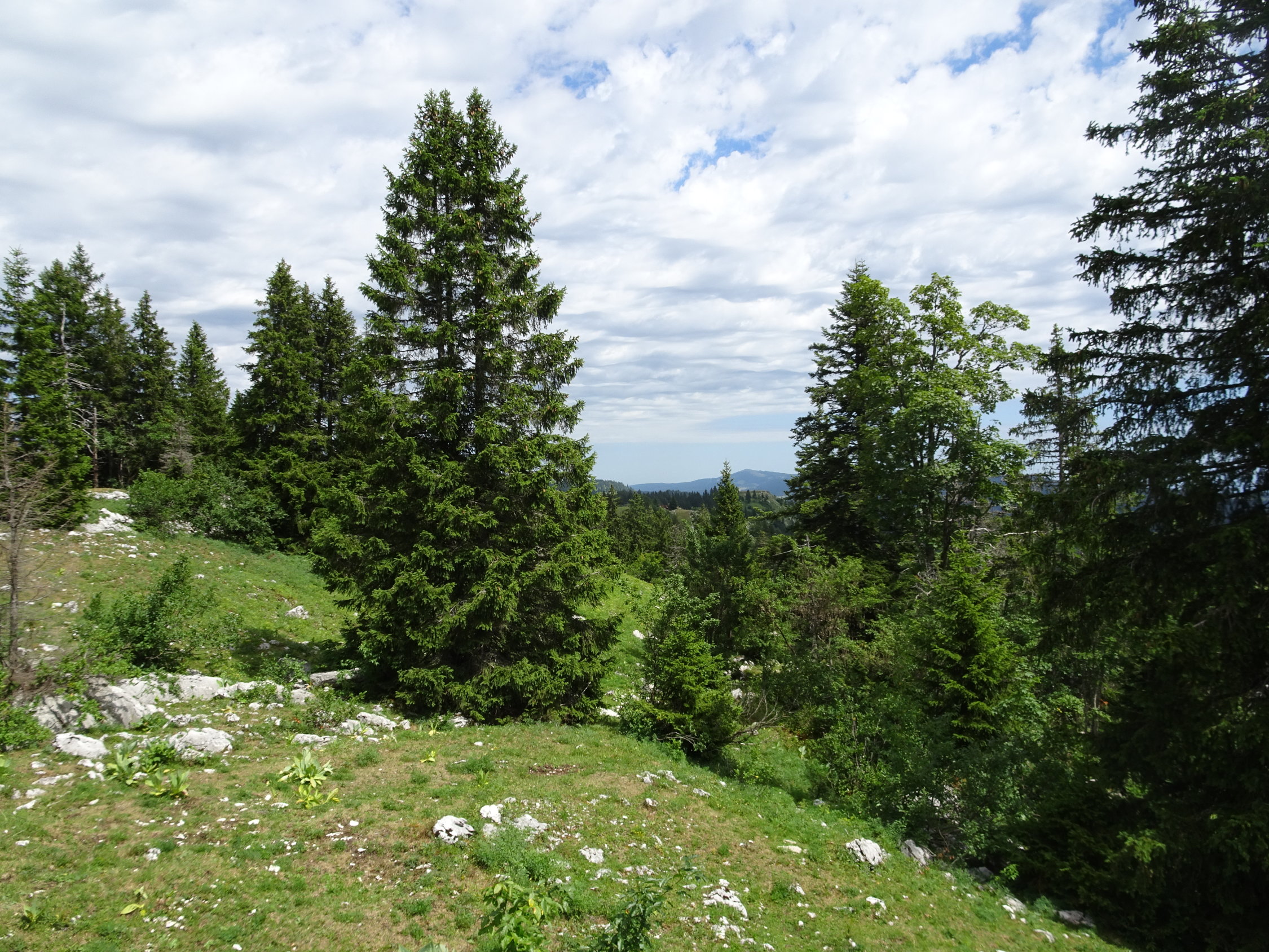 Effektiv stösst man als Jura-Fan irgendwann via Map-Geo auf den Mont Sâla, den Noirmont und den Mont Pelé. Diese drei Berge oder Hügelspitzen und letztlich dann der Mont Pelé sieht man auch im weiteren Zoomfeld immer noch. Die Hügelspitzen sind sowohl in der Landschaft, als auch auf der Karte unscheinbar, aber zeigen doch interessante Ausblicke in alle Richtungen. Vor allem der Mont Sâla lohnt sich, da der ganze Genfersee sichtbar ist. Die höchste Schweizer Erhebung zwischen den beiden höchsten Schweizer Jura-Gipfel, dem La Dôle (1677m) im Westen und Mont Tendre (1679m) im Osten ist der Noirmont mit 1567m. Daneben hat es eine namenslose Erhebung, die 1545m ist, die Crêt des Danses mit 1533m, den Mont Pelé mit 1534m und letztlich, den niedrigsten der Gruppe, mit 1510m, den Mont Sâla. Dieser bietet aber die beste Aussicht.