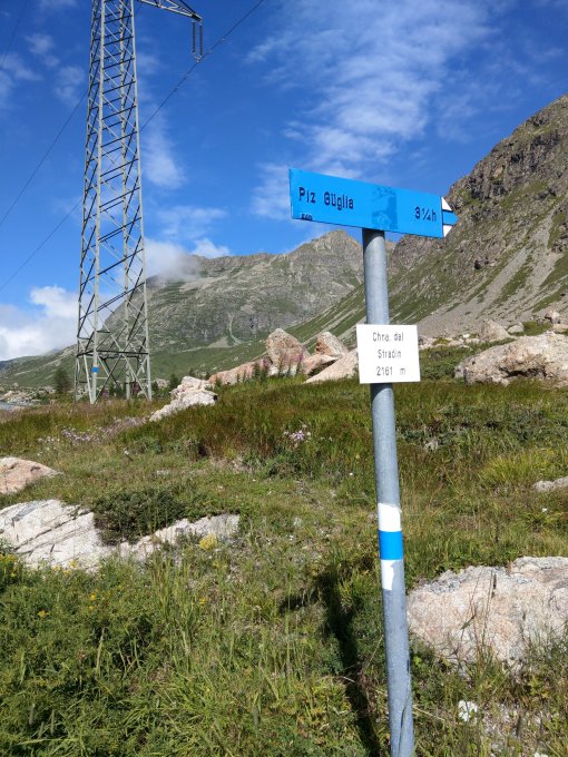 Aufstieg in 2 h 30 min (Chamanna dal Stradin bis Gipfel). 3 h 15 min auf Wegweiser.