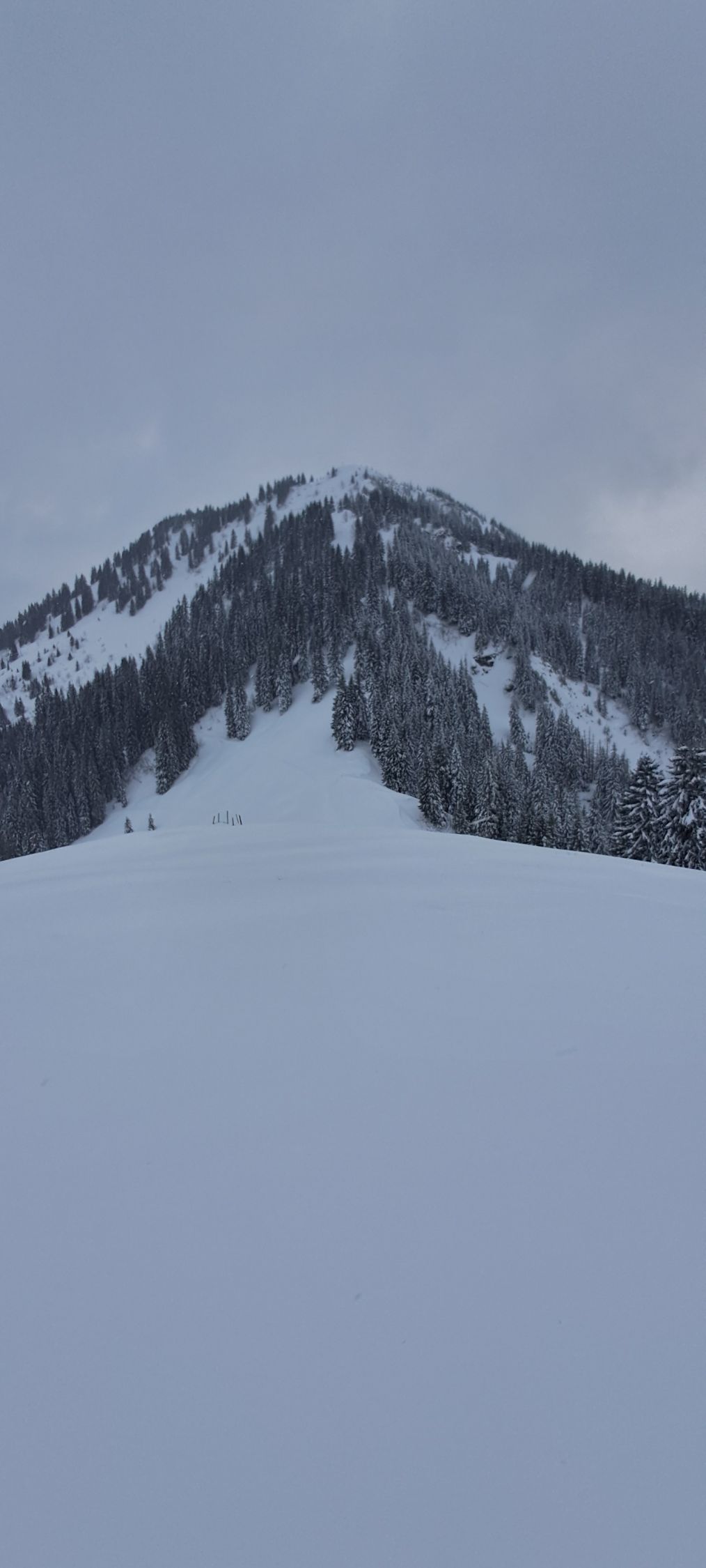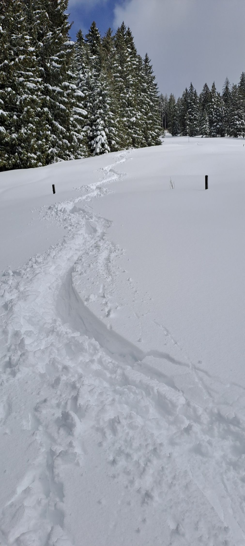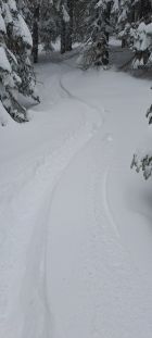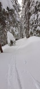20cm oben einiges mehr Neuschnee.Kein Nord Windeinfluss auf dieser Route.
