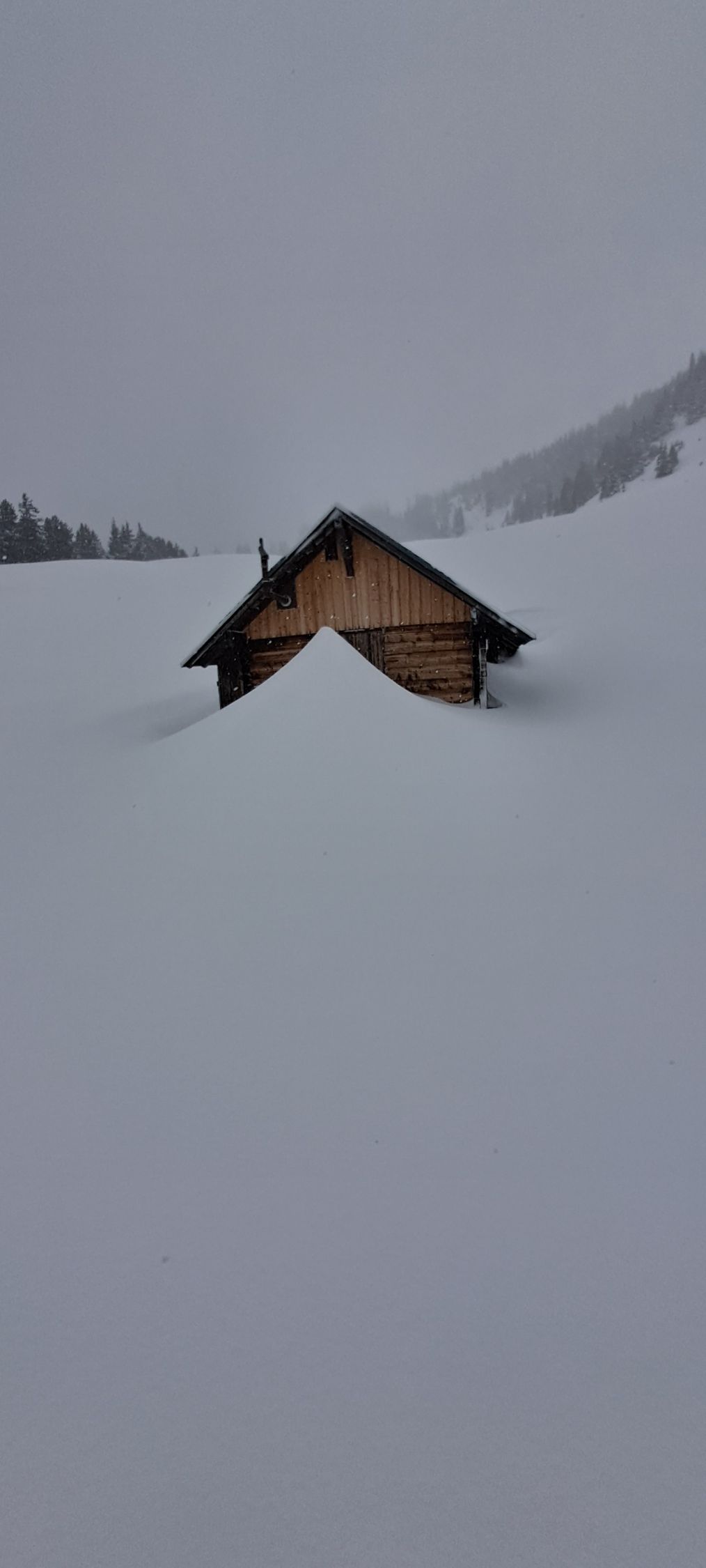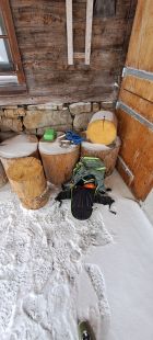 Zum Glück gibts einige alte Gondeln im Gebiet. Super Wetterschutz.