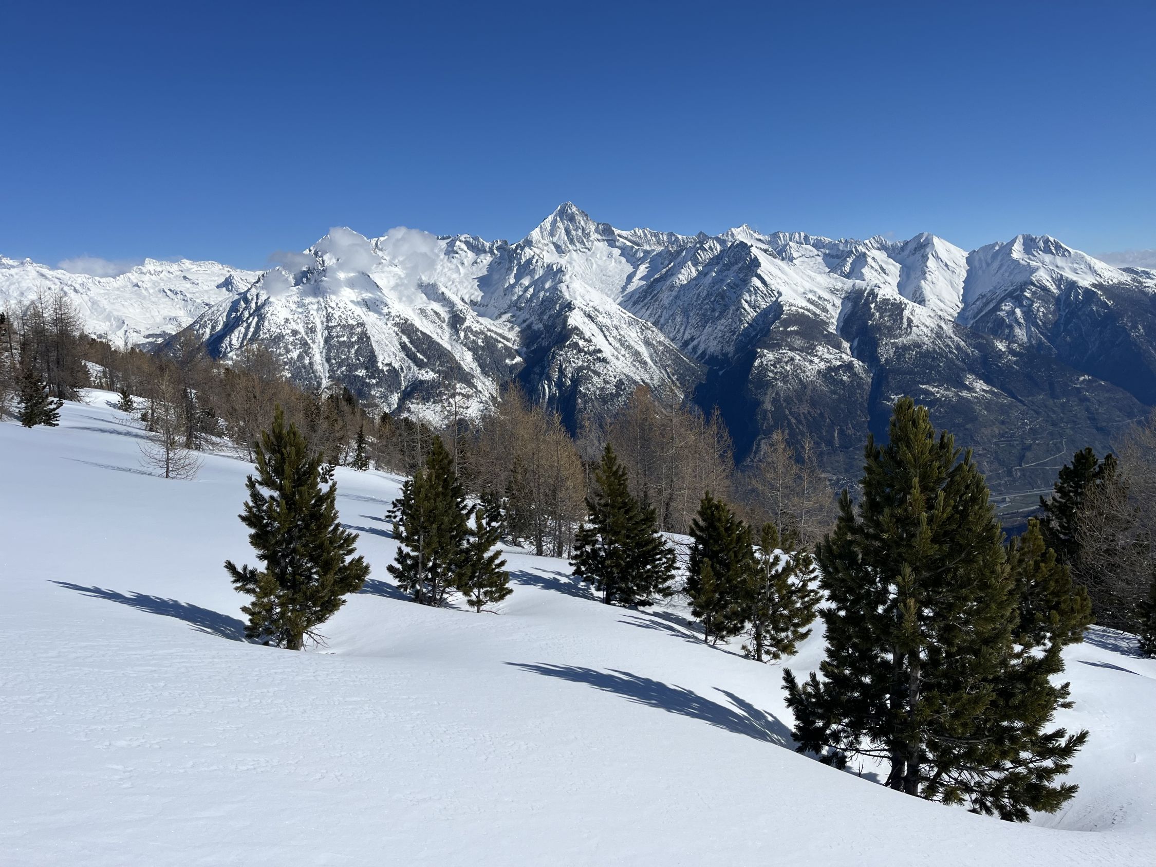 Schöner und leichter Pulverschnee auf meist gut tragender Unterlage. Grate abgeblasen und somit bequem zu begehen. Oben sehr kalt und windig.