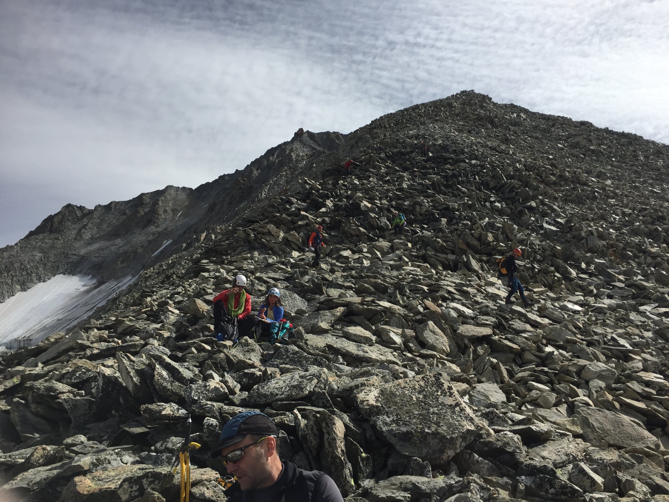 Super Verhältnisse angetroffen auf dem ganzen Weg, Grat trocken und gut zu klettern, aufpassen Steinschlag wenn man in die Flanken kommt.