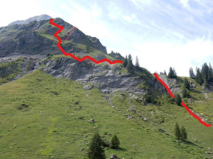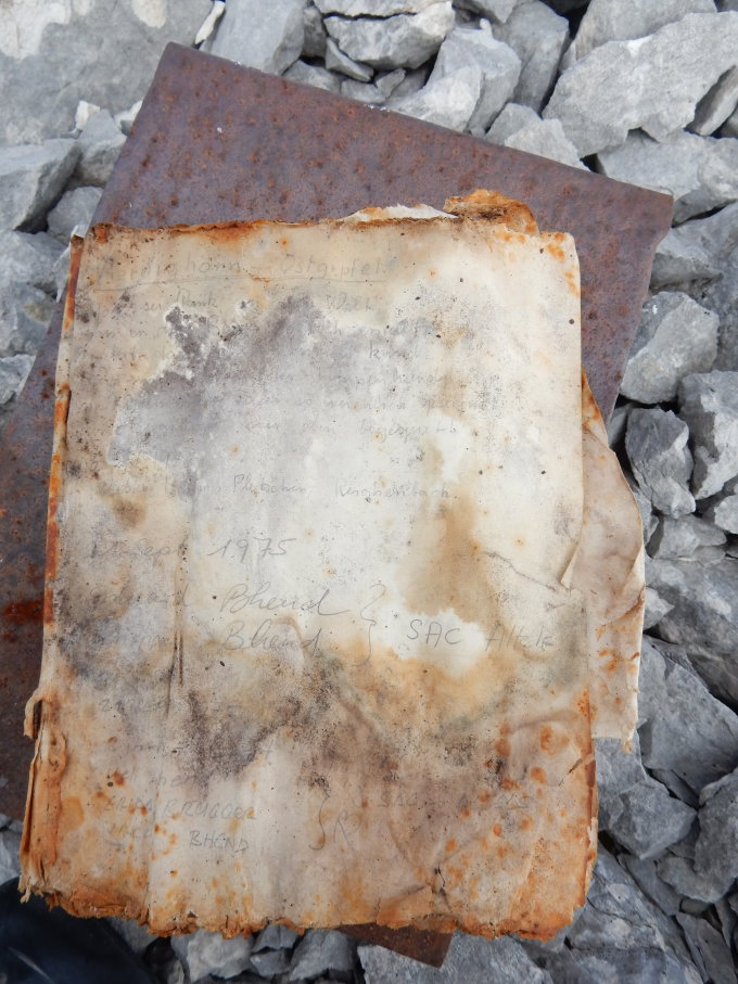 Abstieg über den Südgrat sehr schuttig, aber deutliche Wegspuren. Im Stieregwindli liegt noch etwas Firn, der kraftsparendes Absteigen erlaubt.