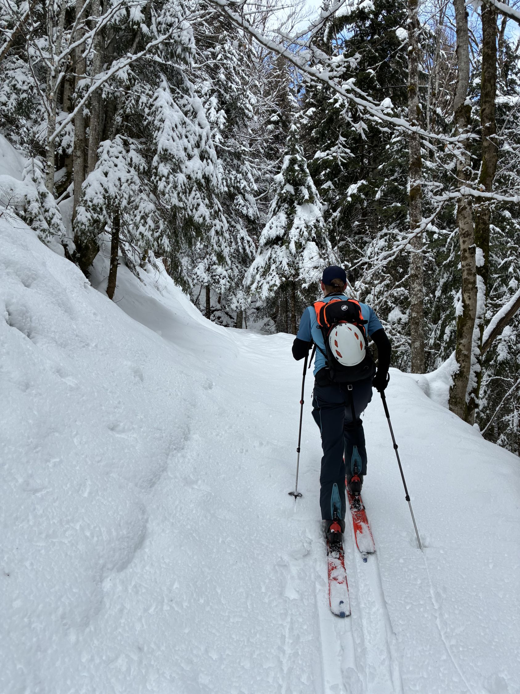 Schnee ein bisschen nass aber sicherlich fahrbar. Abfahrt gut machbar bis Dächli. Danach portage.