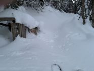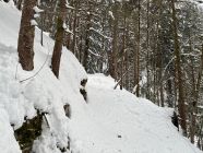 Abfahrt dann der Solistenspur via Rinderweid / Fälleggen folgend- Dank dem unbekannter Splitboarder - die Steilstelle und sein Stacheldrahtzaun sind bis zur Oberkante eingeschneit - habe ihn den Stacheldraht beim Abbrutschen jedoch leicht freigelegt.