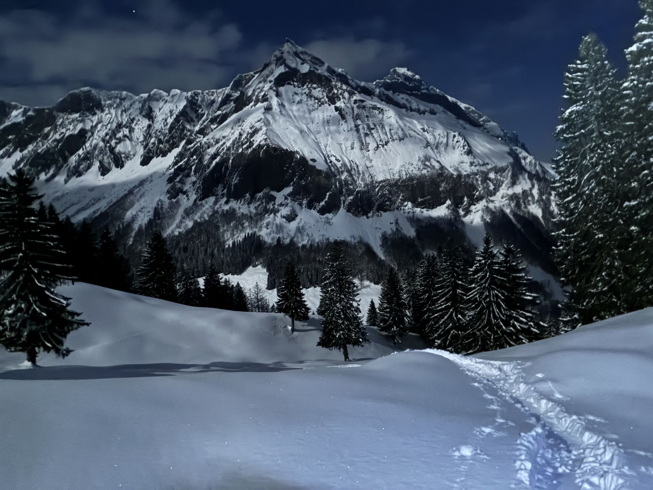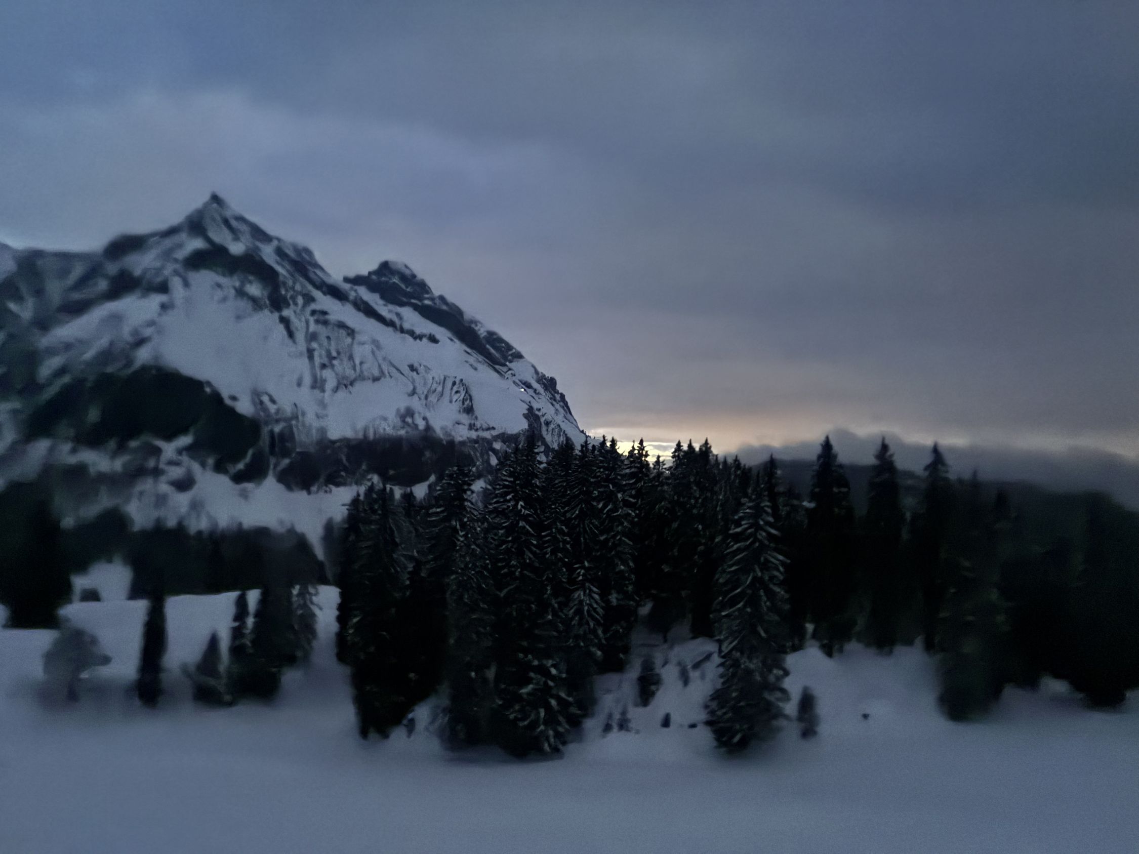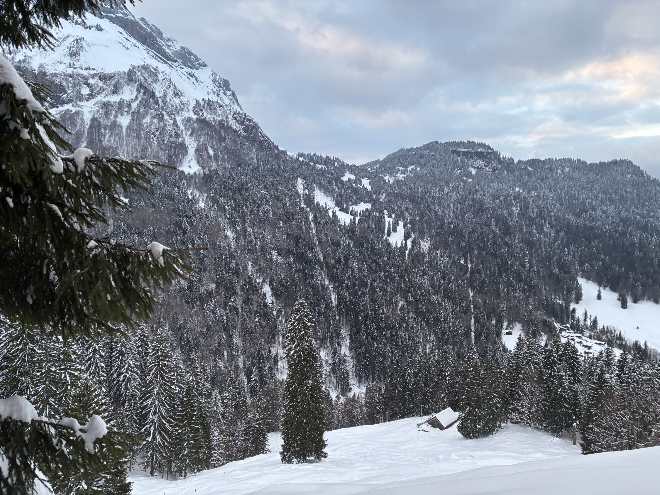 An der Strasse hat’s direkt im Walde gute 30cm Schnee, wortwörtlich mit jedem Meter kommt ein Zentimeter Schnee hinzu! Den Aufstieg via Schwantli durfte ich einspuren, alles Problemlos machbar man könnte sogar “weglos” direkt durch die Wälder hochsteigen aufgrund der Schneehöhe.