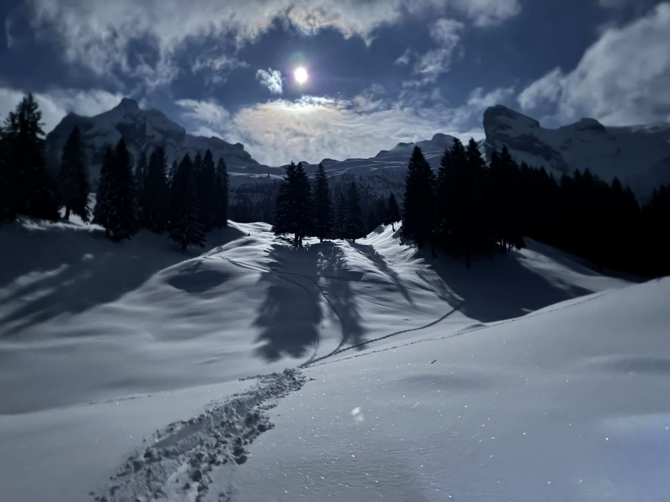 Generell hat’s nur meine und die Spur des Unerkannten Splitboarders - d.h.: Redertengrat, Mutteri(Stock), oder auch die Schleife via Aberen sind noch komplett unverspurt.