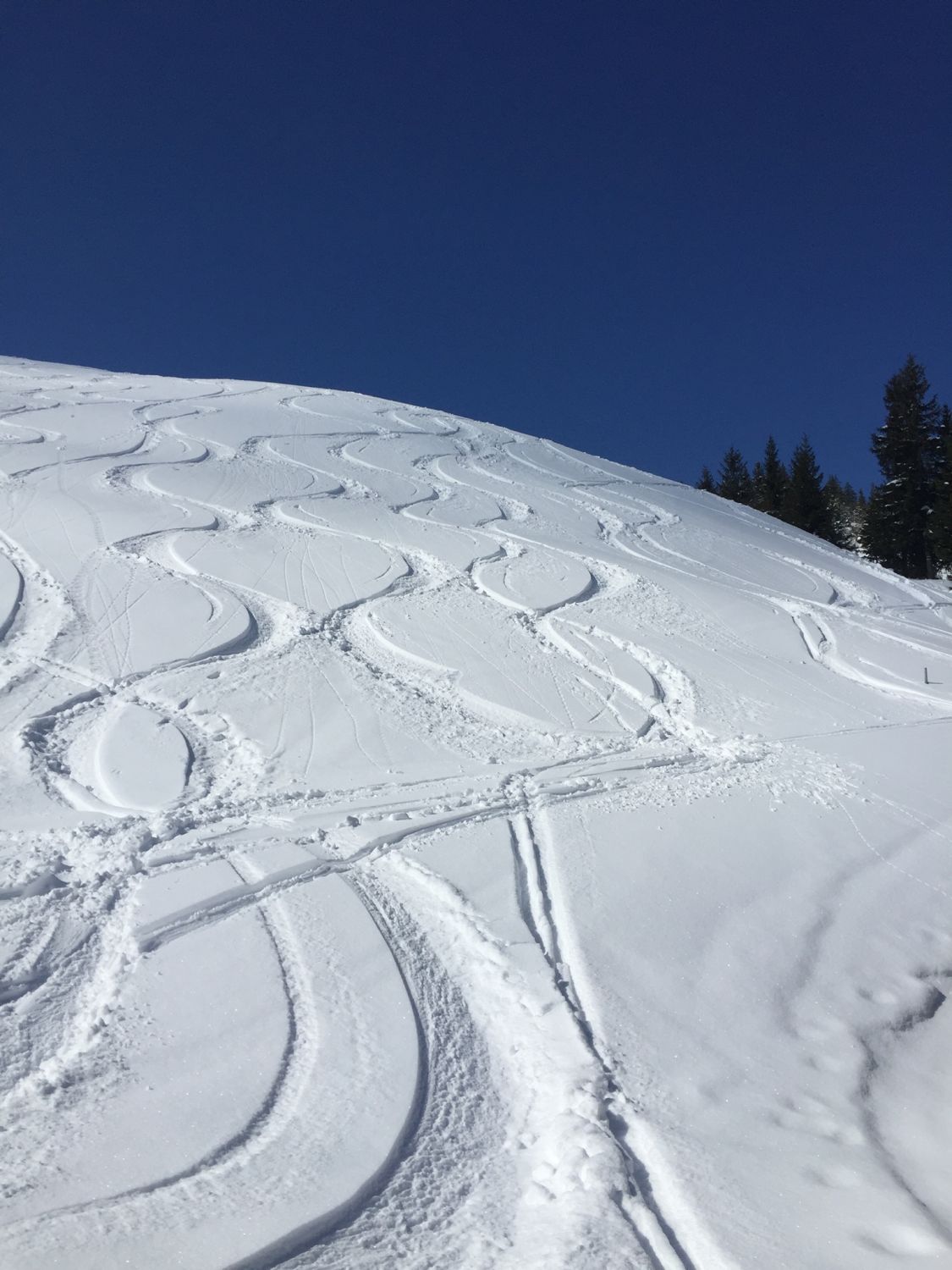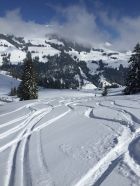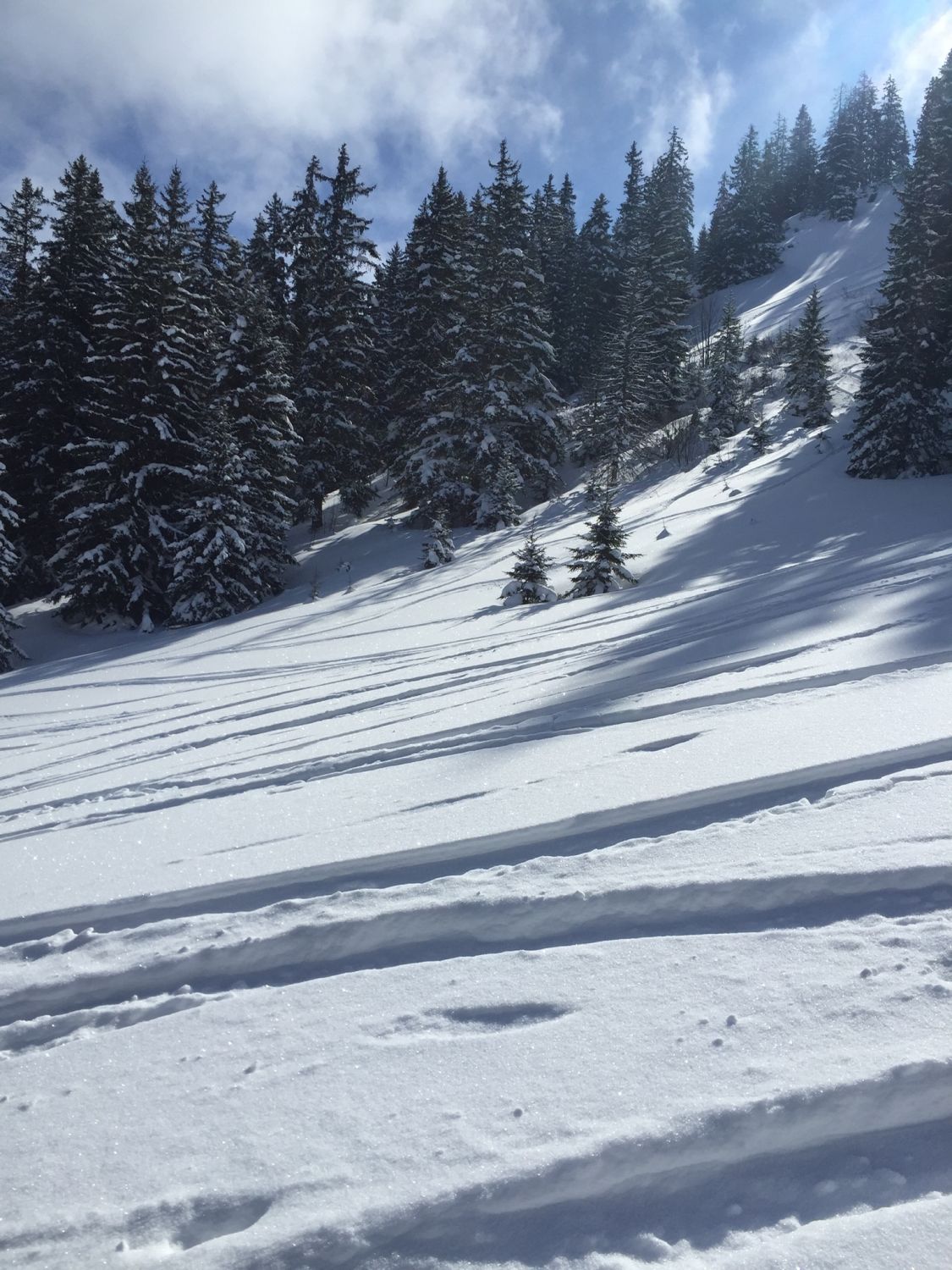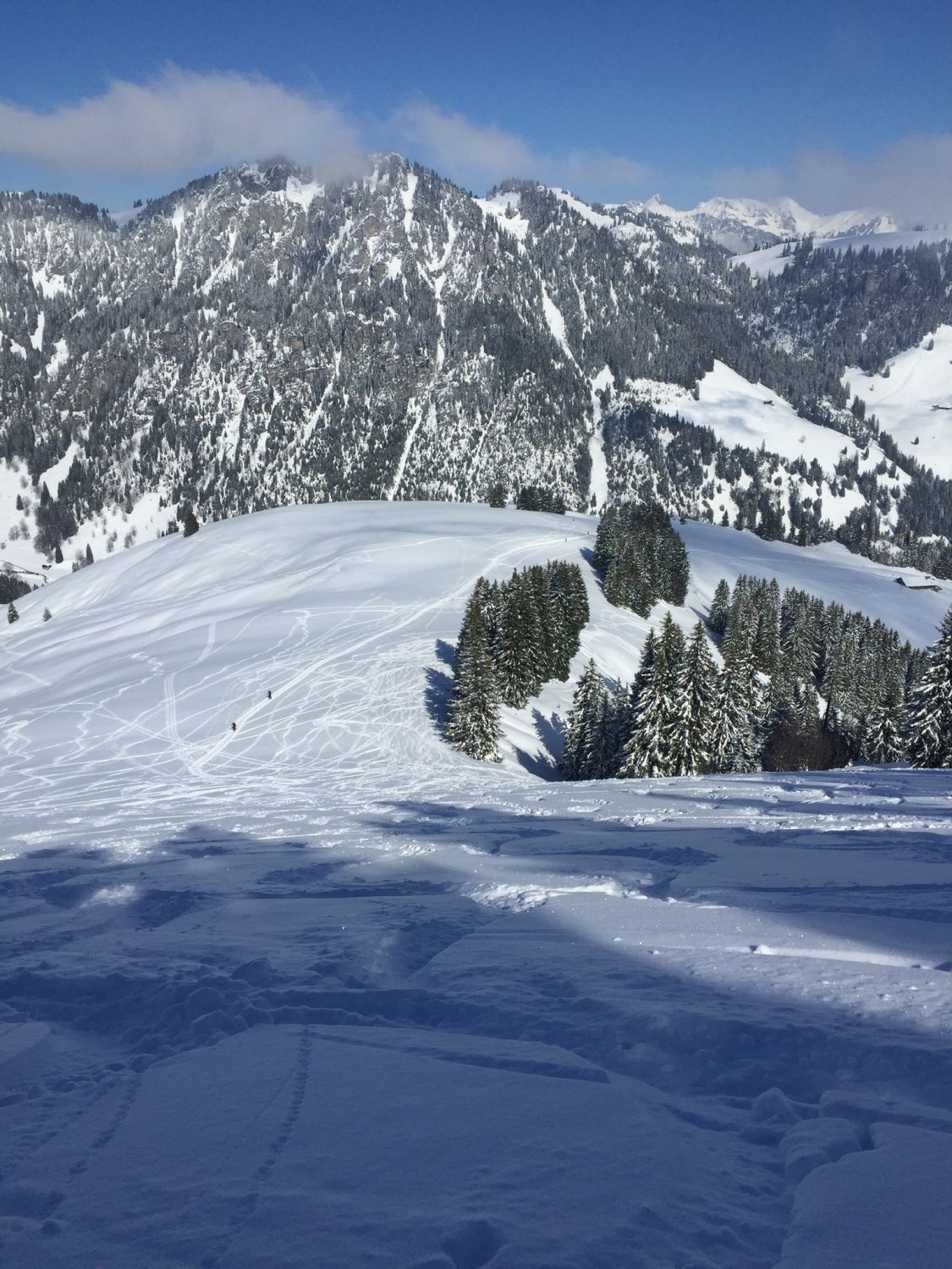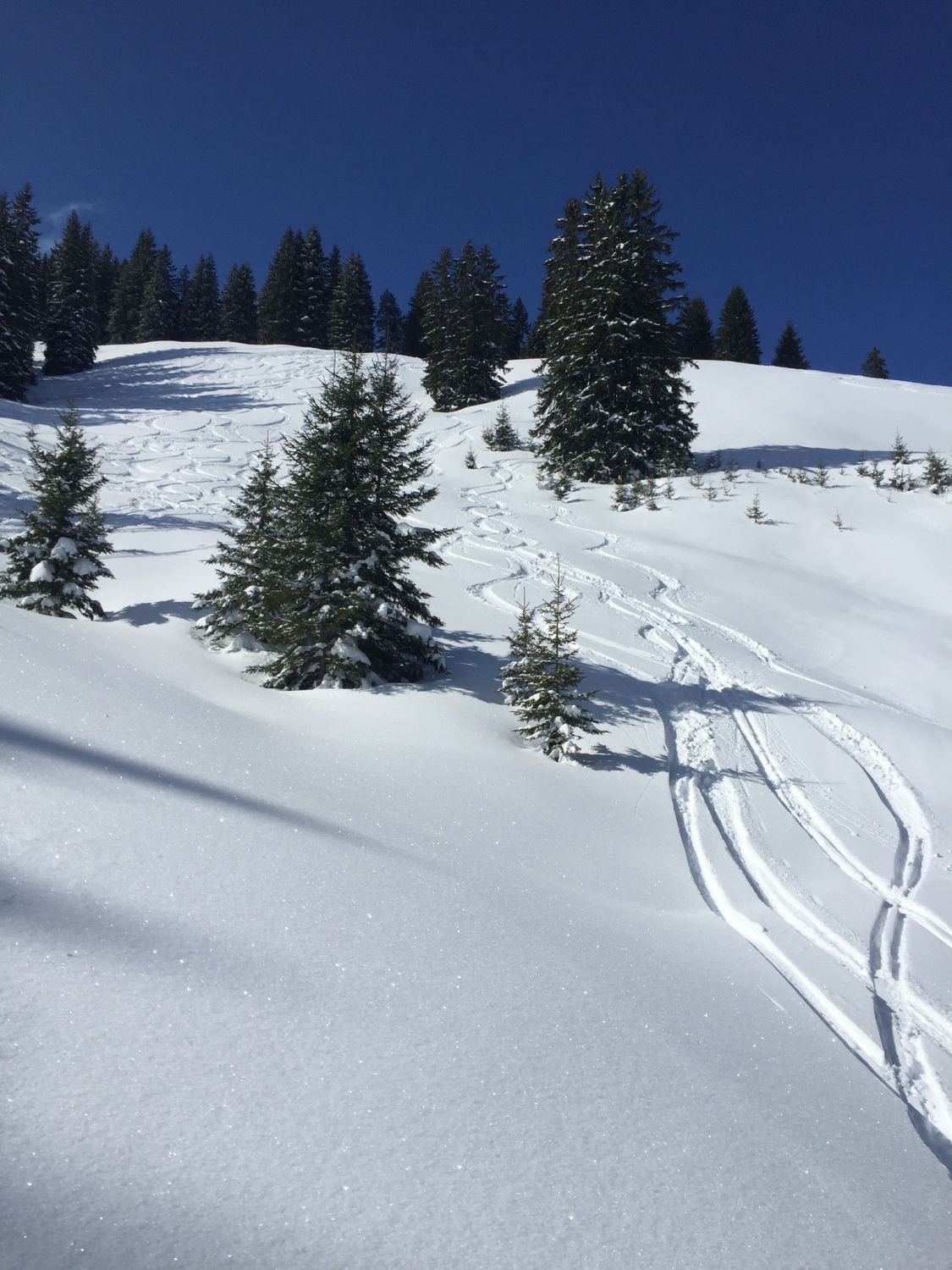 Ab Start mit Ski oder Board begehbar. Start kurz nach halb 9. Pulver am glitzern. Sonne und blauer Himmel. Sehr gute Spuranlage merci ! Top Pulver von oben bis unten und das am 2. April ! Abfahrt vor halb 12 war Top !