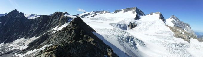 Sehr abwechslungsreiche Bergtour. Ausgesprochen exponiert gelegene Dossenhütte, die nur effektiv luftversorgt werden kann. Am Nordost-Rand des Gletschergebietes des Berner Oberlandes gibt es faszinierende Blicke auf das schmelzende Eis. Das Dreigestirn Wetter-, Rosen- u. Wellhorn hat man nah vor sich und man kann sich vom Gipfel sehr gut die dort hinführenden Routen über die Gletscher vorurteilsfrei anschauen für weitere Zielsetzungen.