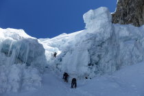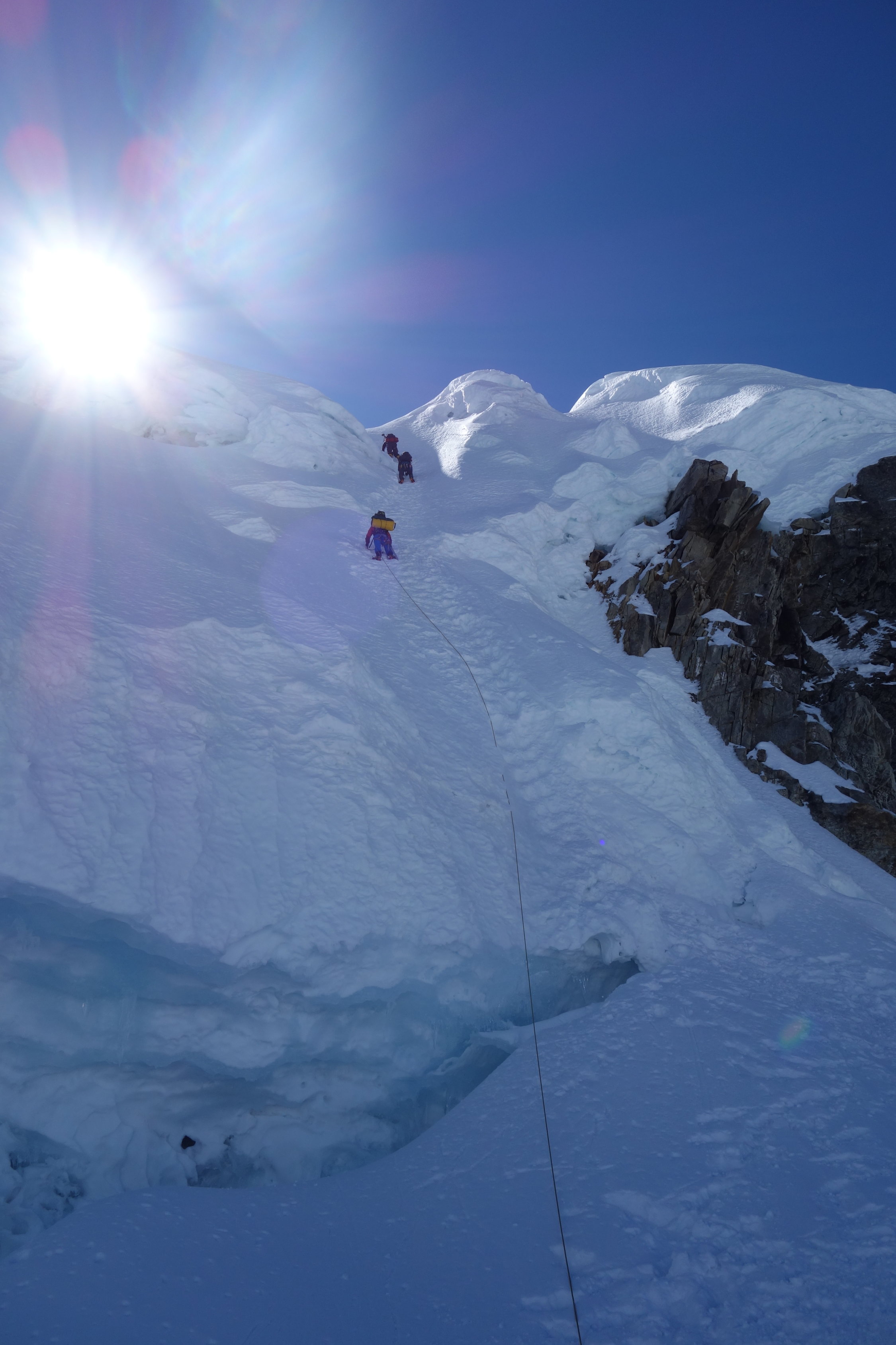 Gemäss den Bergführerbüro in Huaraz sind die Bedingungen dieses Jahr am Alpamayo als sehr gut zu bezeichnen, so haben wir das auch empfunden. Letzte Seillänge stellt trotz Kürze die Cruxlänge dar. Etliche Seilschaften sind hier umgedreht da der Firnaufstieg fast unmöglich ist. Die Ostflankenvariante ist kurz sehr ausgesetzt, kann aber mit mehrer Eisschrauben und Firnanker gut abgesichert werden.