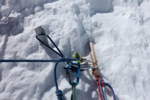 Was ein bischen nervig war :-( dass nachfolgende, geführte Gruppen die installierten Firnanker zum High Camp einsammelten. Beim Abstieg vom Highcamp fehlten diese und wir mussten selber wieder 2 zurücklassen. Daher sollte man immer genug dabei haben.