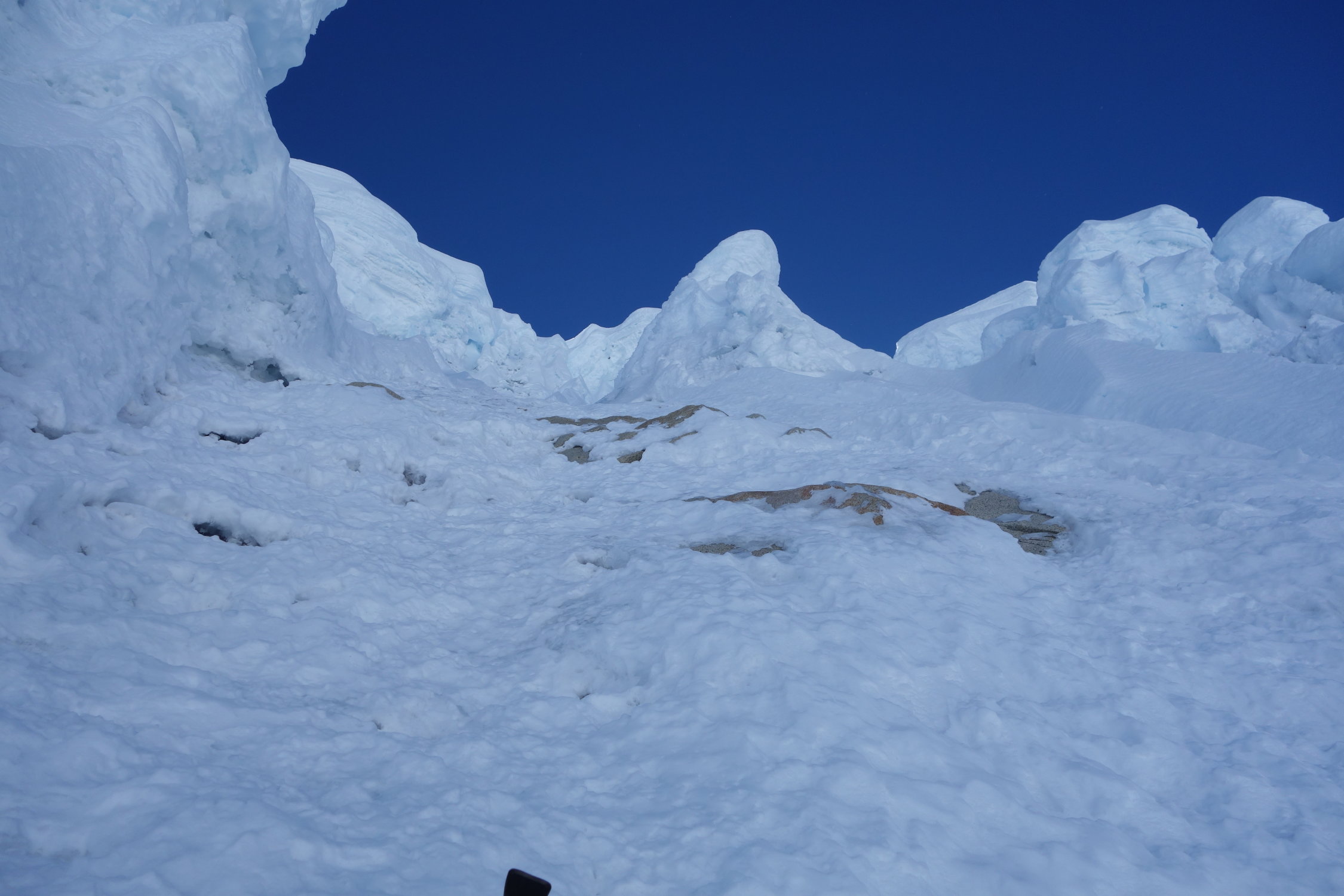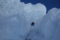 Um 12:30 das letzte mal über den Bergschrund abgeseilt um 14:30 nach Pause wieder im High Camp.