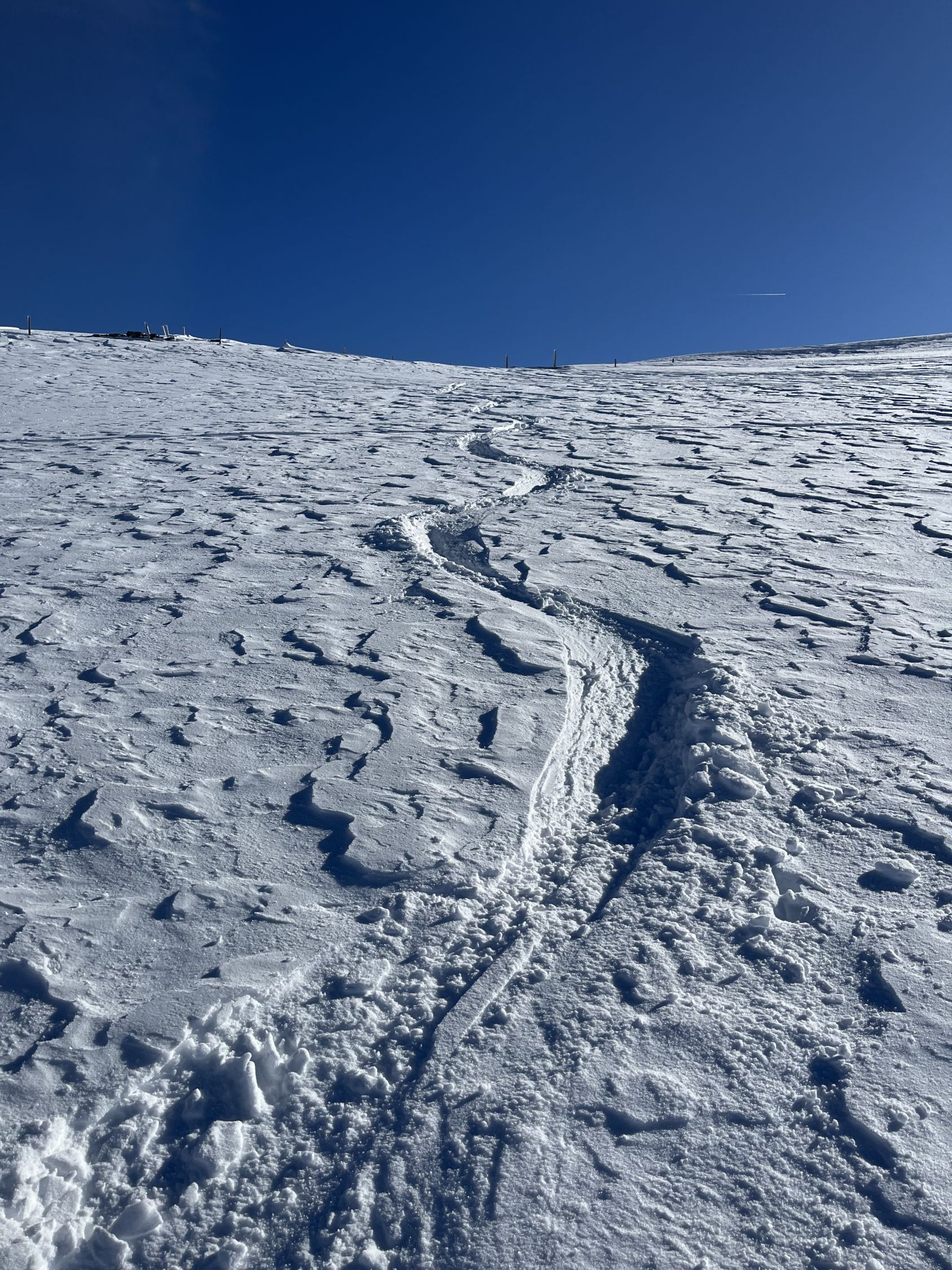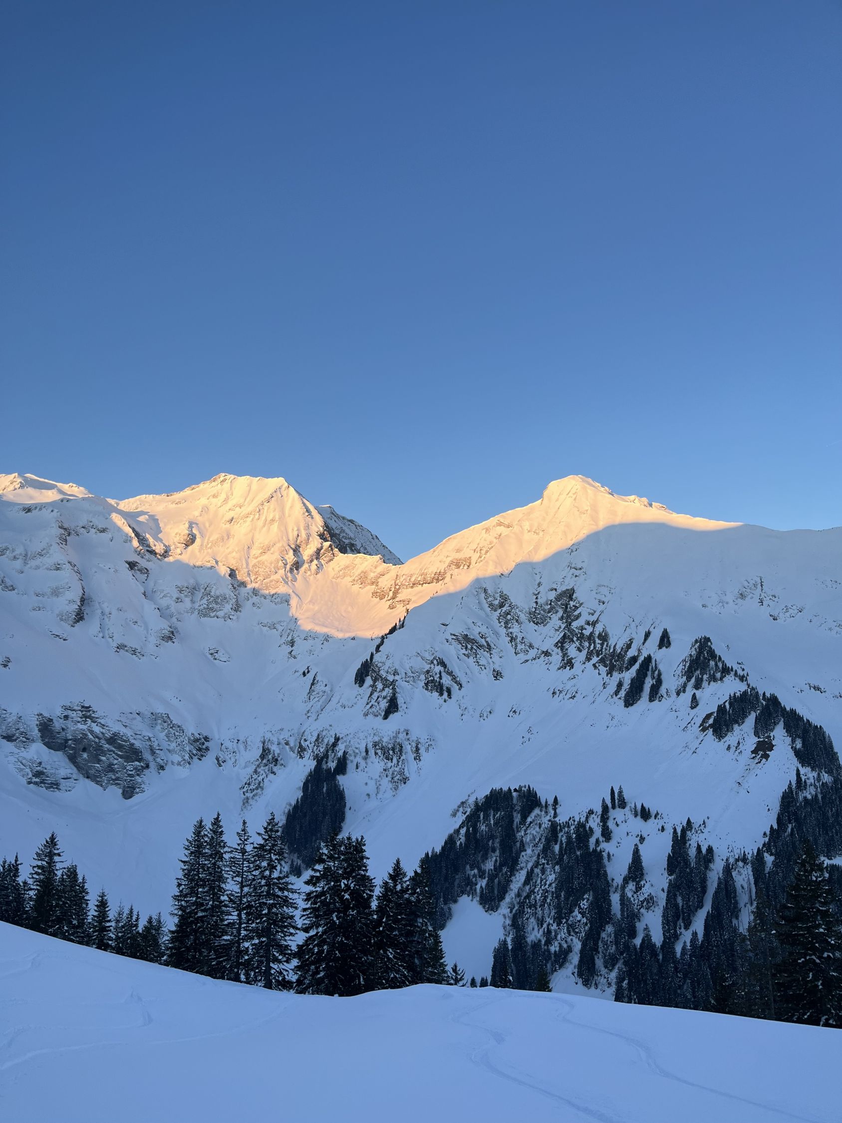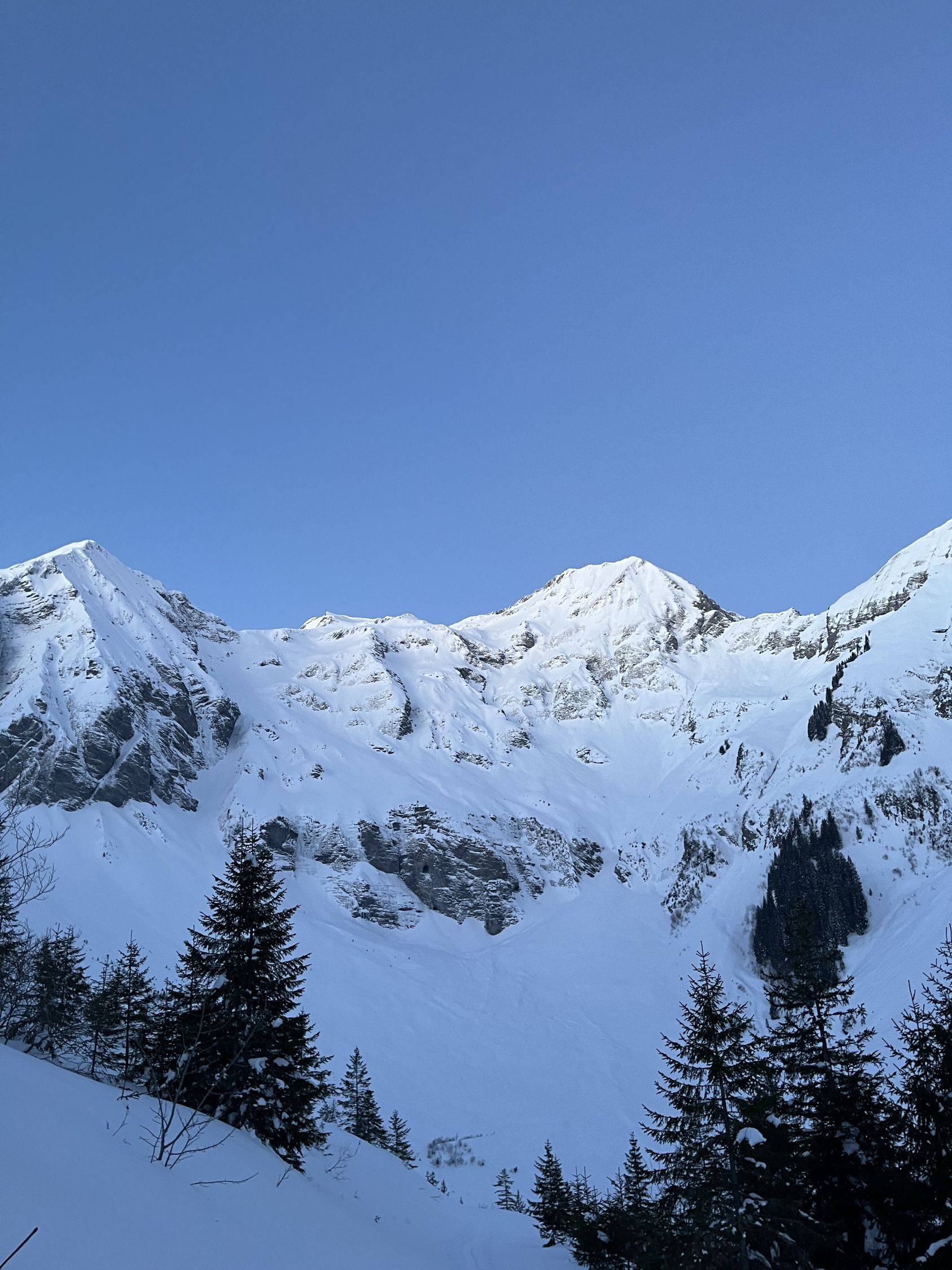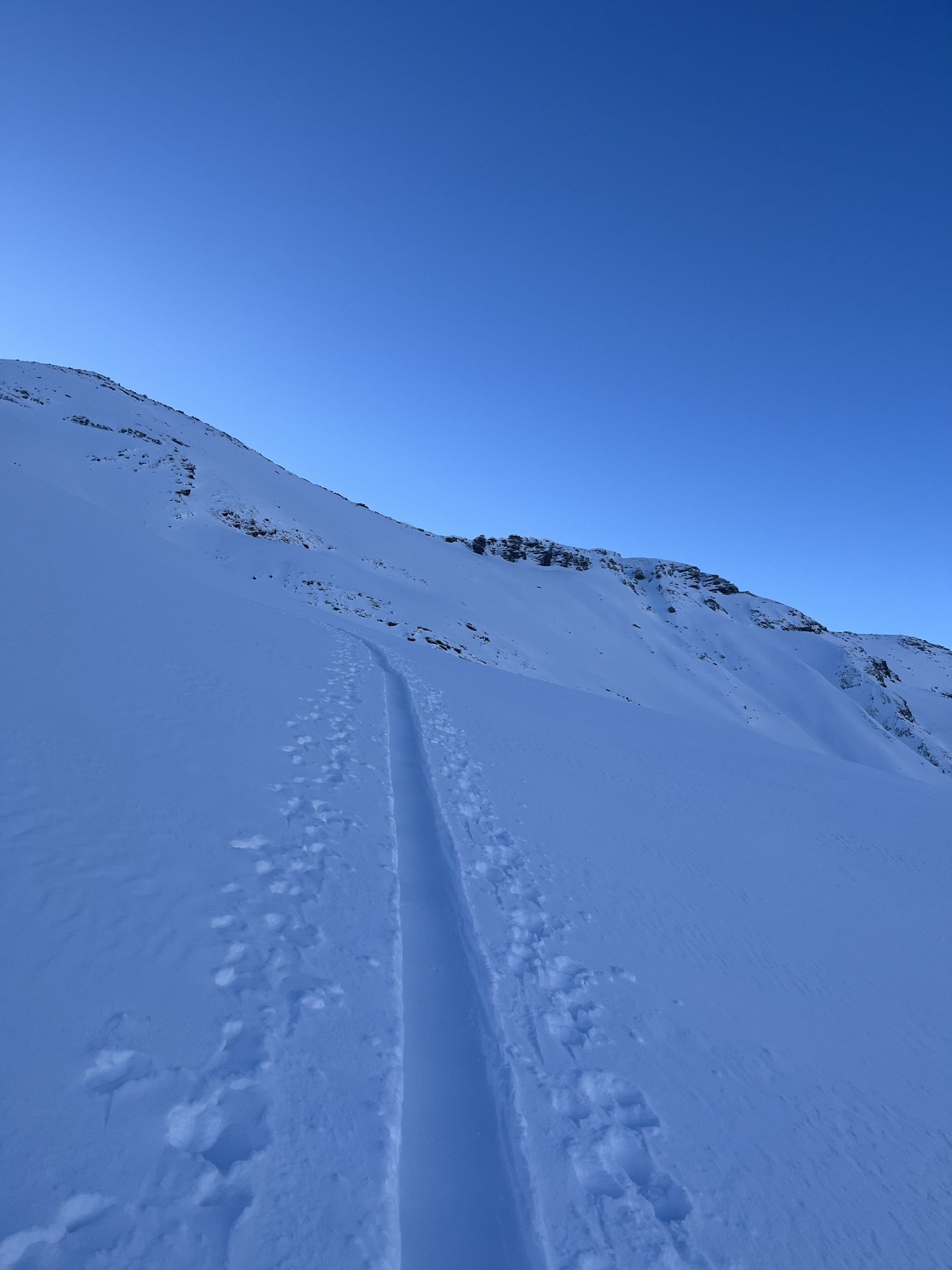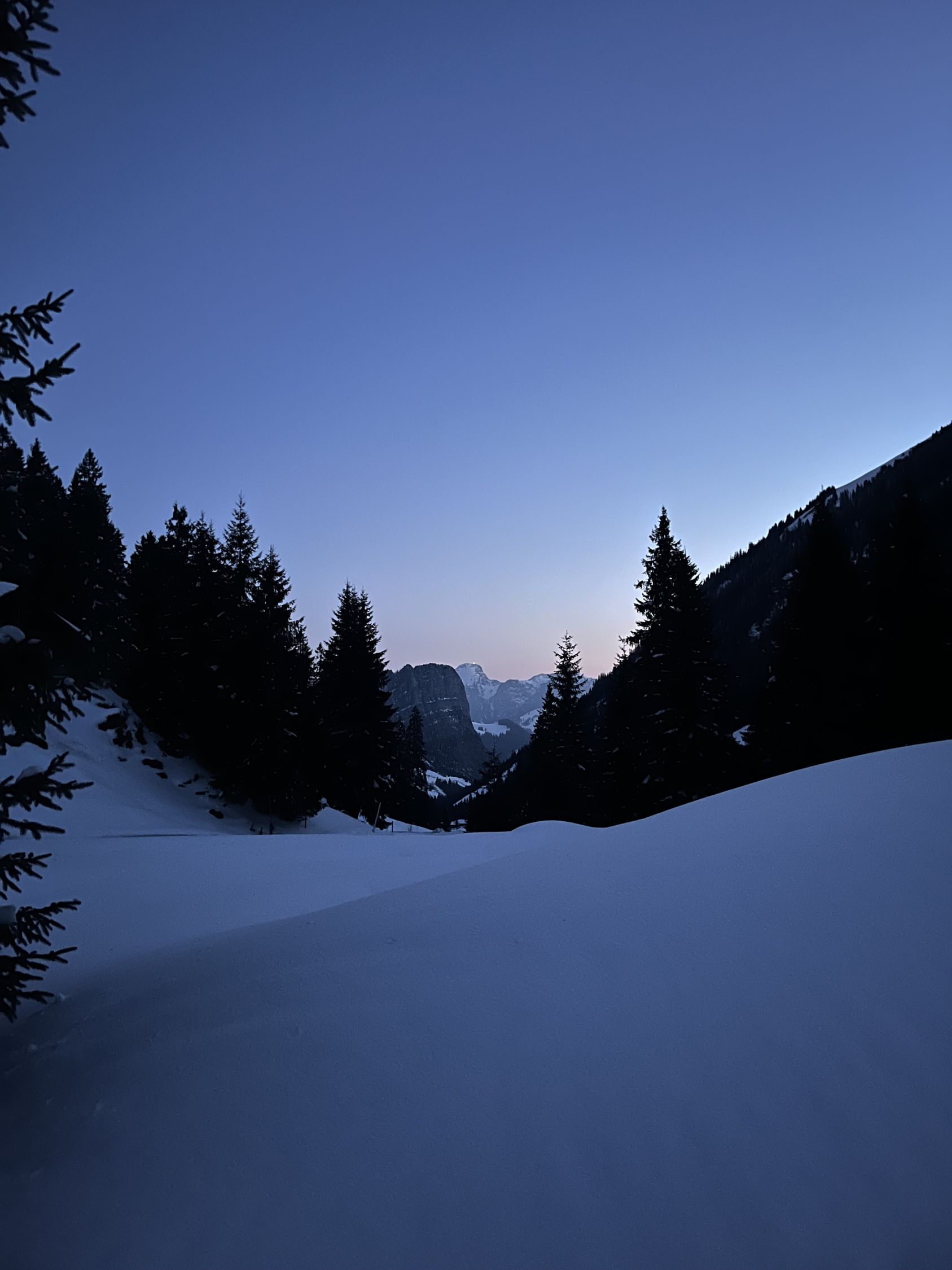 Bin um 6.30 Uhr bei -5 Grad im Chirel gestartet. Nach dem letzten ergiebigen Schneefall habe ich gedacht, dass ich nur bis Sagi fahren kann, deshalb ging ich so früh. Nun hat das Militär die Strasse geräumt bis Chirel. Auch der Parkplatz im Chirel ist gut geräumt. Es hat so viel Schnee wie kaum mal in diesem Winter. Deshalb wagte ich mich nicht alleine auf das Winterhorn. Als ich bei der Hohniesenhütte war, sah ich 5 Türeler Richtung Winterhorn aufsteigen. Das Couloir zum Winterhorn ist sehr gut eingeschneit. Die Aufstiegspur Richtung Bündihorn ist sehr gut gelegt. Habe erst auf dem Gipfel die Sonne gesehen (8.45 Uhr). Oben fast windstill und angenehm warm. Die Fernsicht war in der untersten Luftschicht etwas getrübt. Bei der Abfahrt, hat es oben noch etwas Pulverschnee, aber dann hatte es Bruchharsch. Wenn man in der Nähe des Waldes fährt findet man noch Pulverschnee bis unten. Es war eine traumhaft schöne Tour.