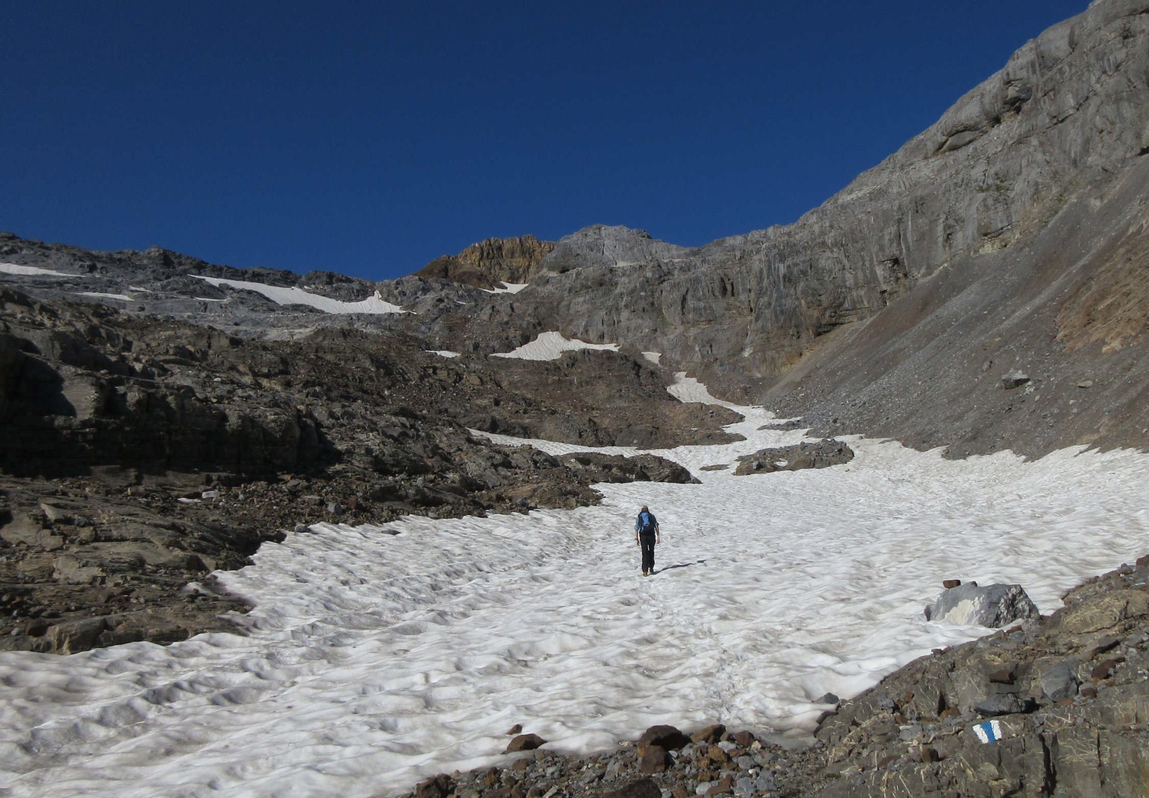 Trocken und warm. Der Wasserfall unter dem Firnblätz hatte am Morgen ganz wenig Wasser. Felsen und Wege fast überall trocken. Oben kurze Schneepassagen, harmlos.