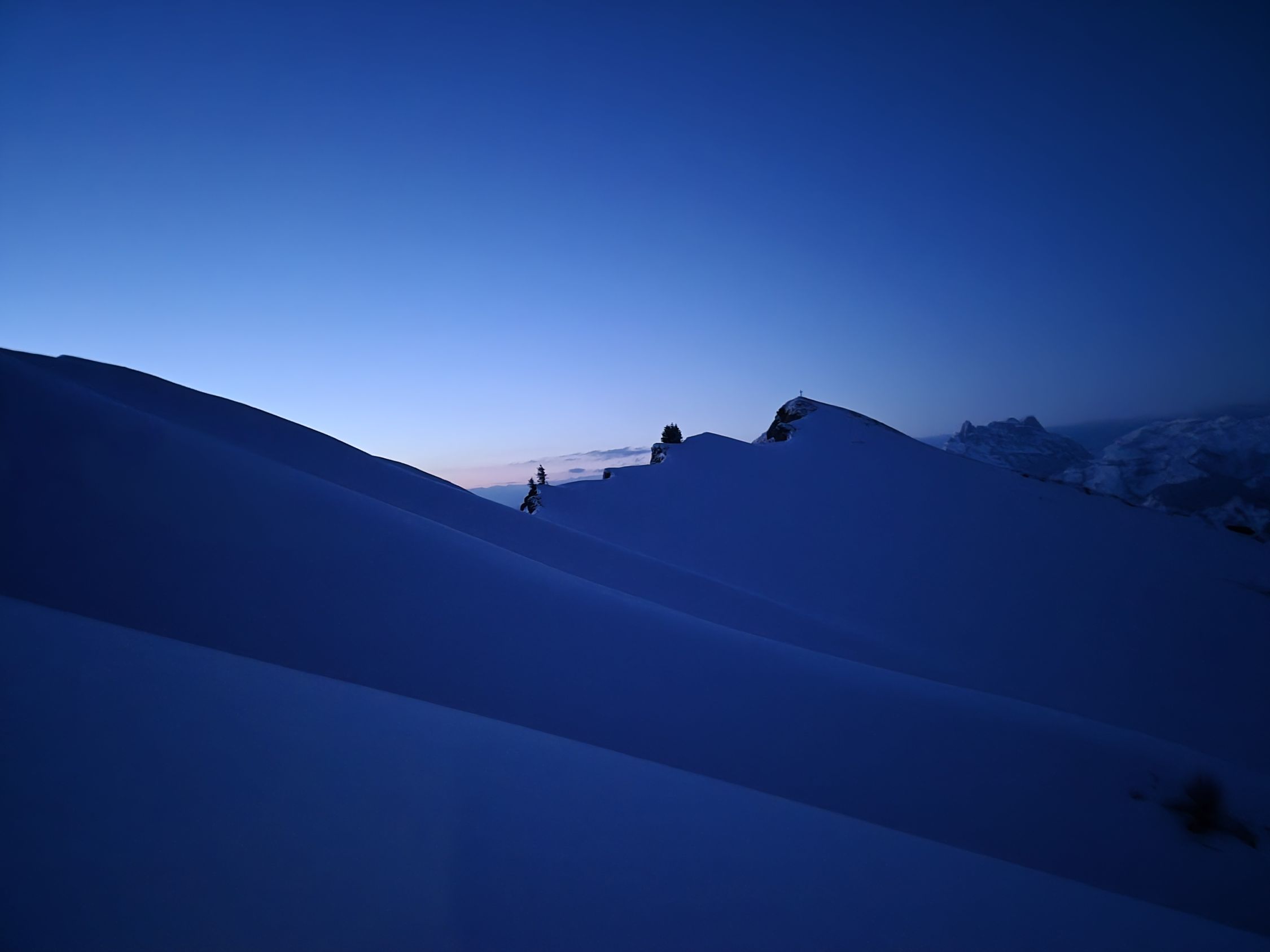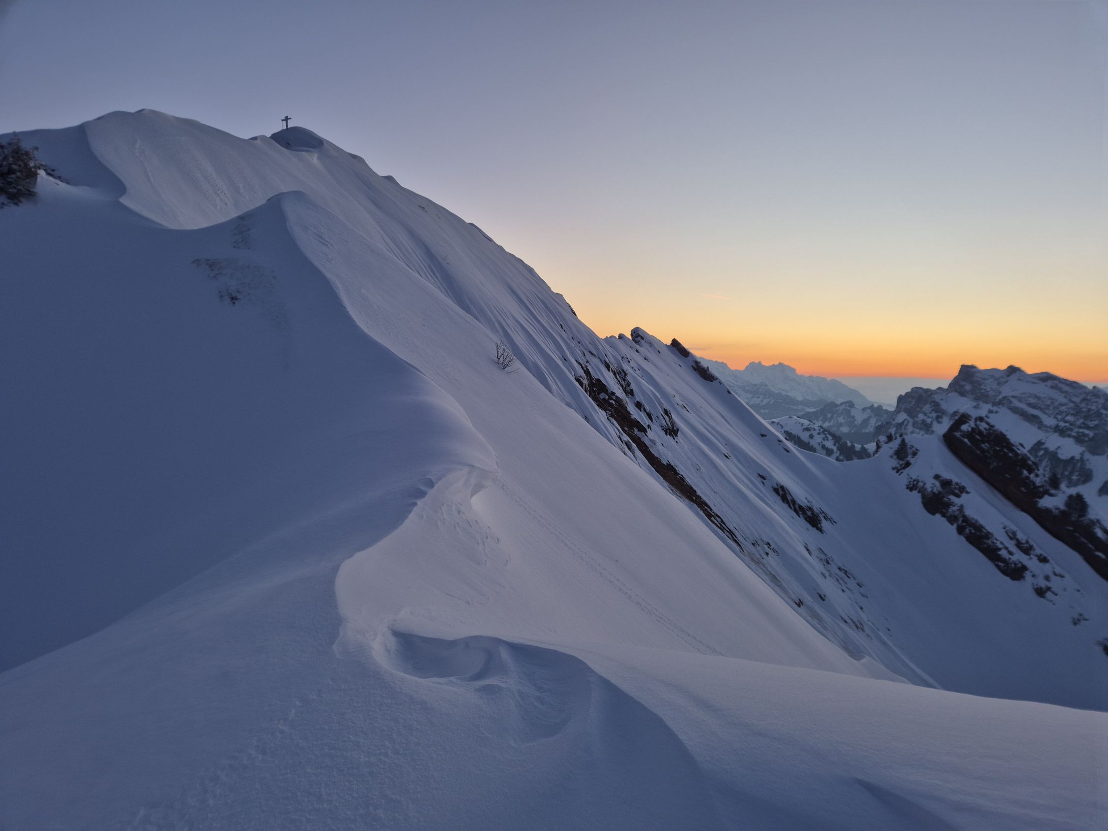 Das gut bezieht sich auf die üppige Schneemenge von Unten (Kapuzberg) bis Oben. Start unter Kapuzberg, nicht Weesen. Gipfelhang unter Skidepot und Mulde von Gross Siene schöner Pulver (ausgezeichnet), ab Stelli bis runter übler Bruchharsch. Da ich um 4.00 Uhr los bin, hatte die Sonne natürlich auch keine Chance die Kruste aufzuweichen.