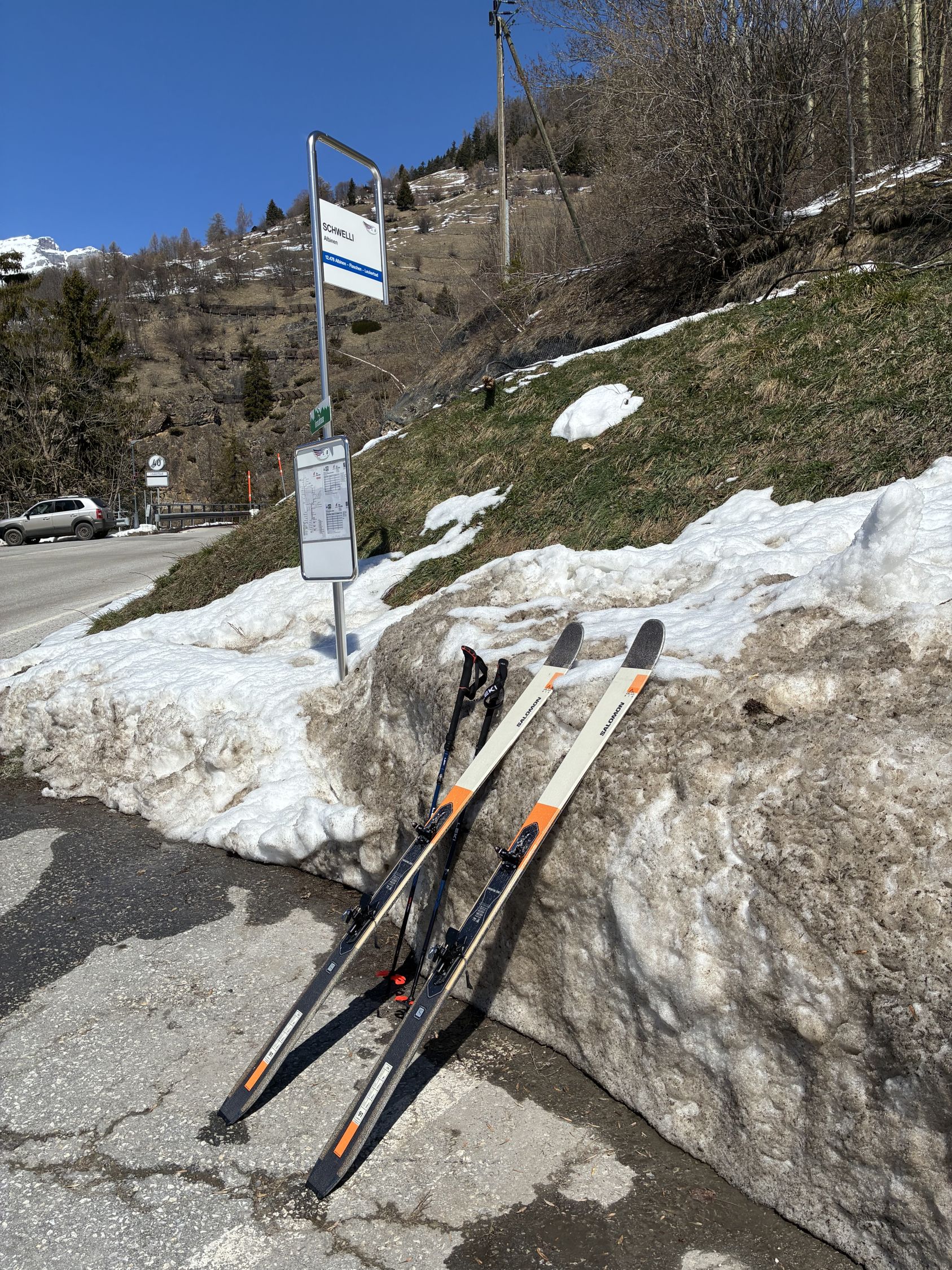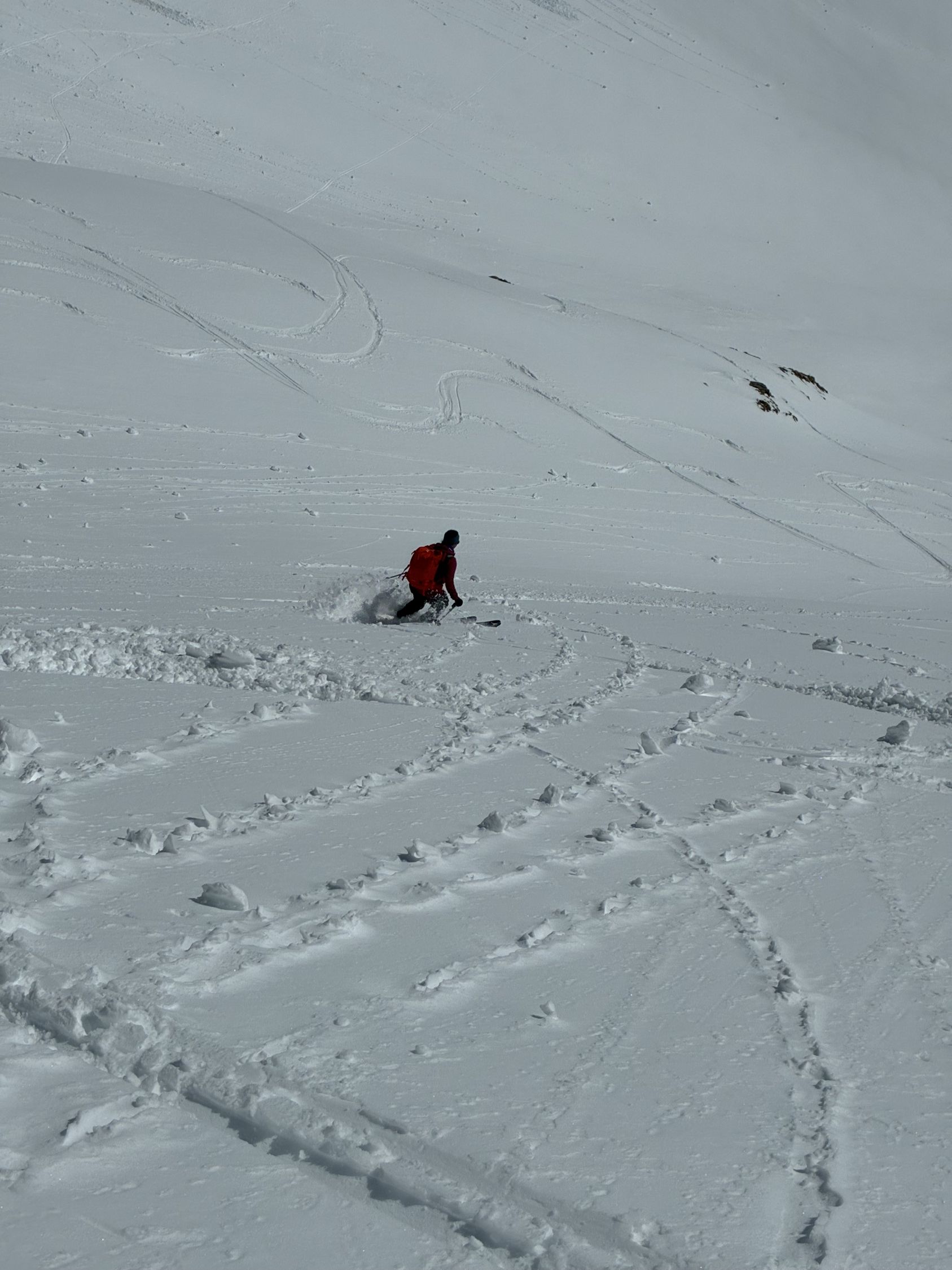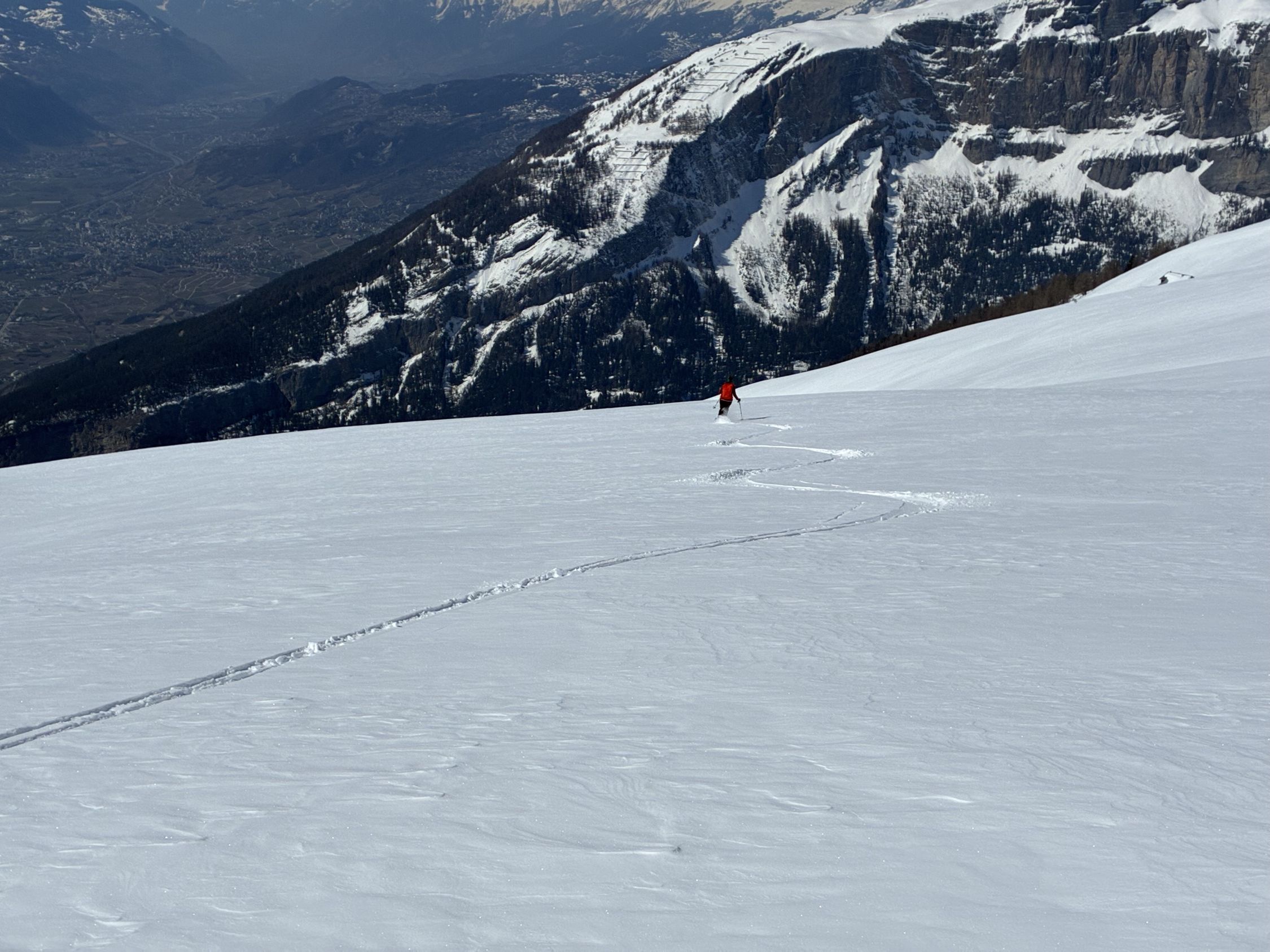 Abfahrt zum Wyssä See in leicht gedeckeltem Pulver und dann über Tschermilonga ganz nach Albinen hinunter. Bei der Alp etwas Bruchharsch, weiter unten nass und gut fahrbar.