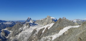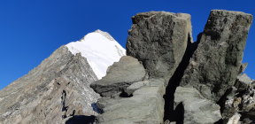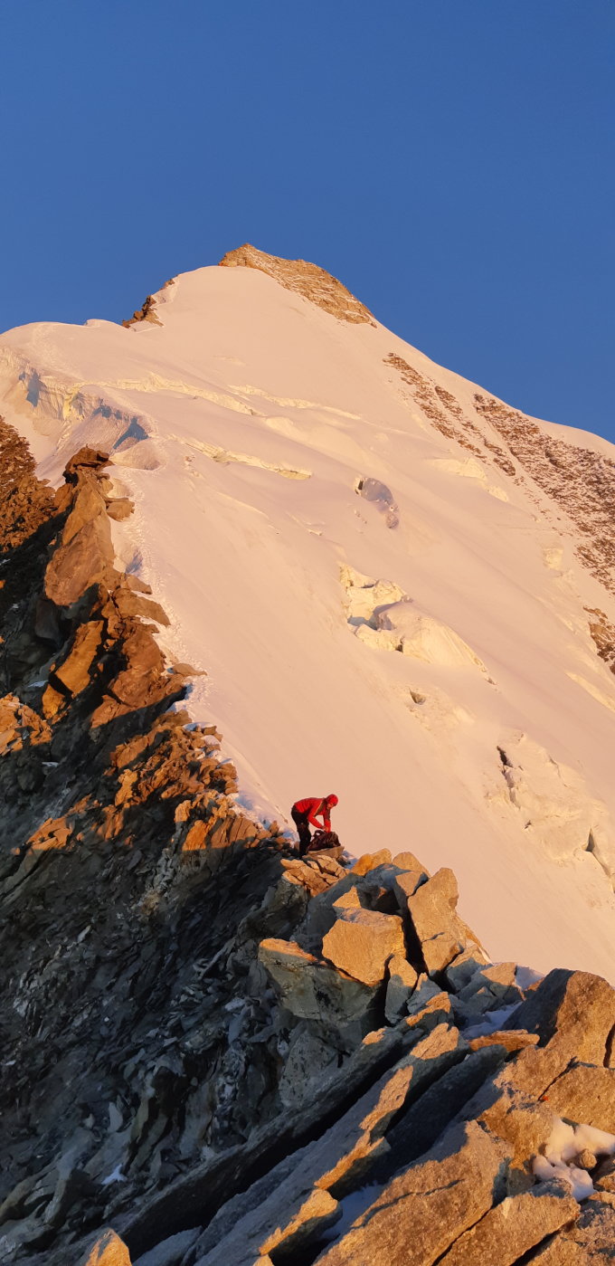 Top Verhältnisse. Fels trocken und durchwegs schneefrei. Firngrat hat mittlerweile wieder gute, griffige Trittspur. Kein Schrauben notwendig. Zweimal ist am Firngrat allerdings eine etwas brüchig wirkende Spaltenbrücke zu überwinden. Wenn die Temperatur wieder steigt bzw. gleich bleibt, könnte Firngrat allerdings wieder eisig werden.