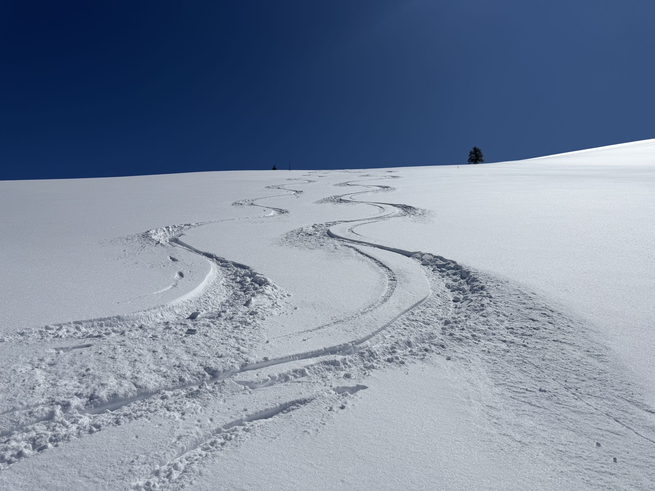 Powder vom feinsten. Jungfräuliche Hänge. Bis Puntel keine Spuren. Problemlos bis knapp vor Därstetten gefahren. Wird nicht besser. Tipp Tour, wie mitten im Winter.