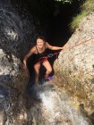 Die folgende Abseilstelle führt von einem Baum über eine sehr rutschige Wand in Schluchtgrund. 20Meter reichen knapp. Die folgenden Passagen sind Fantastisch uns suchen Ihresgleichen.