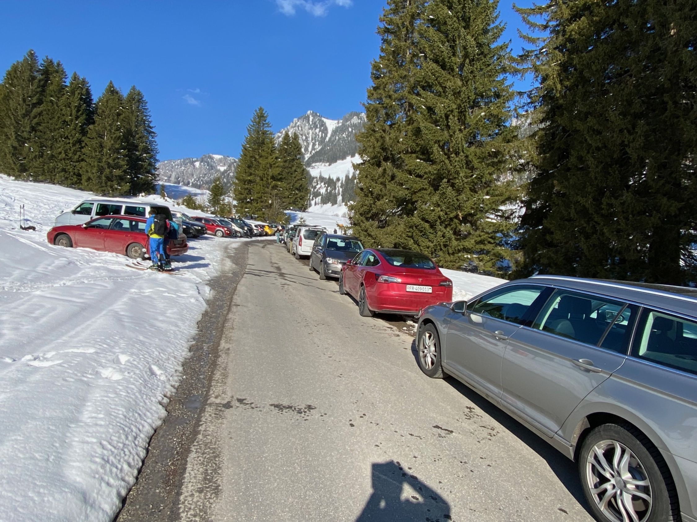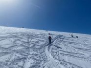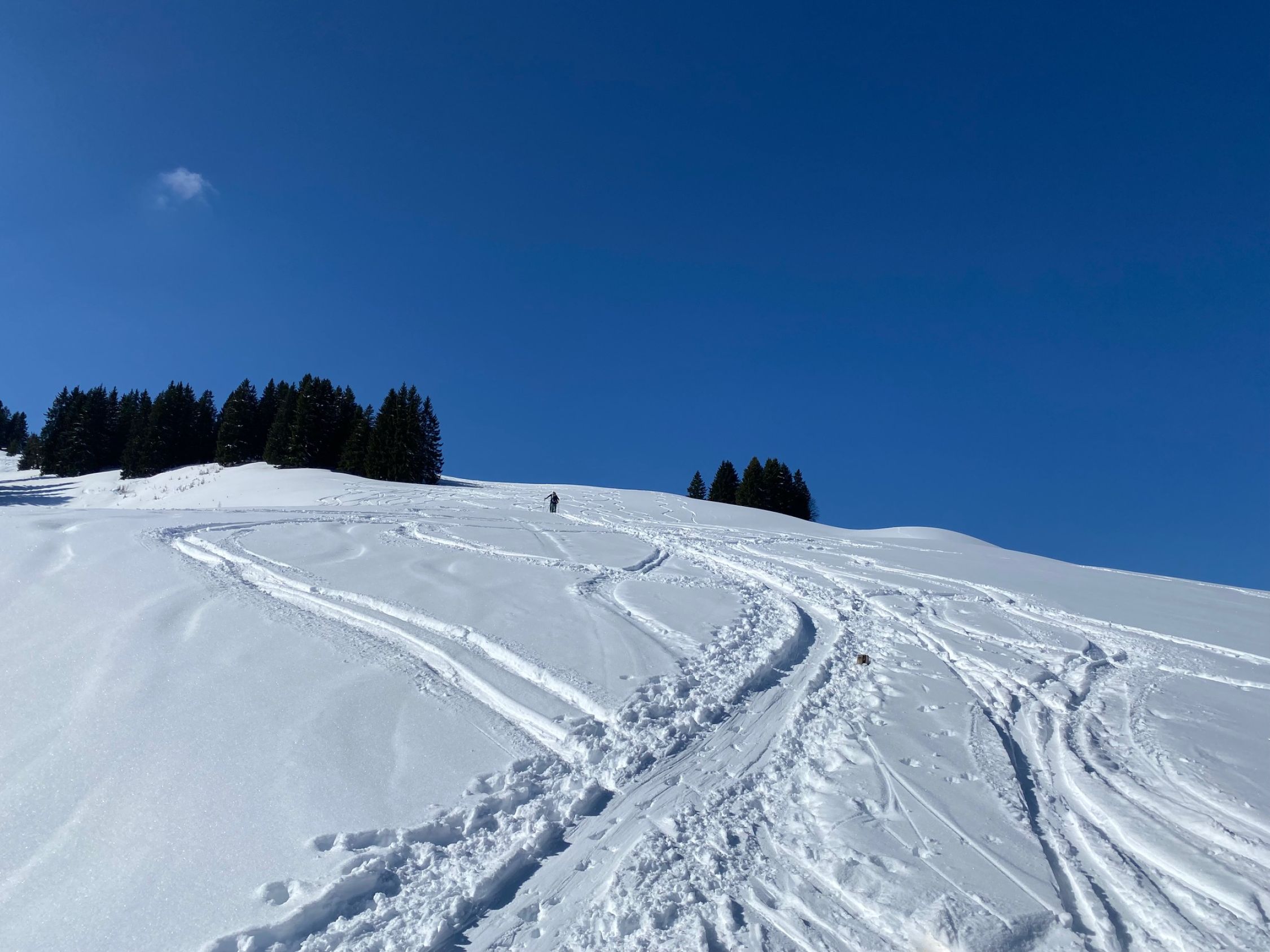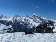 Abfahrt ca. 11:30: Gipfelhang und steilerer Hang nach Engstelle noch Pulver, allerdings schon stark zerfahren. Dann teils schwerer Pulver, teils schon leichter Deckel. Unterer Teil ab Gründlisgraben dann wieder besser, da ohne Deckel dafür recht feucht. Allerdings auch sehr zerfahren. Ich bin anschliessend noch zum Stand, da waren die Verhältnisse deutlich besser (siehe dort)