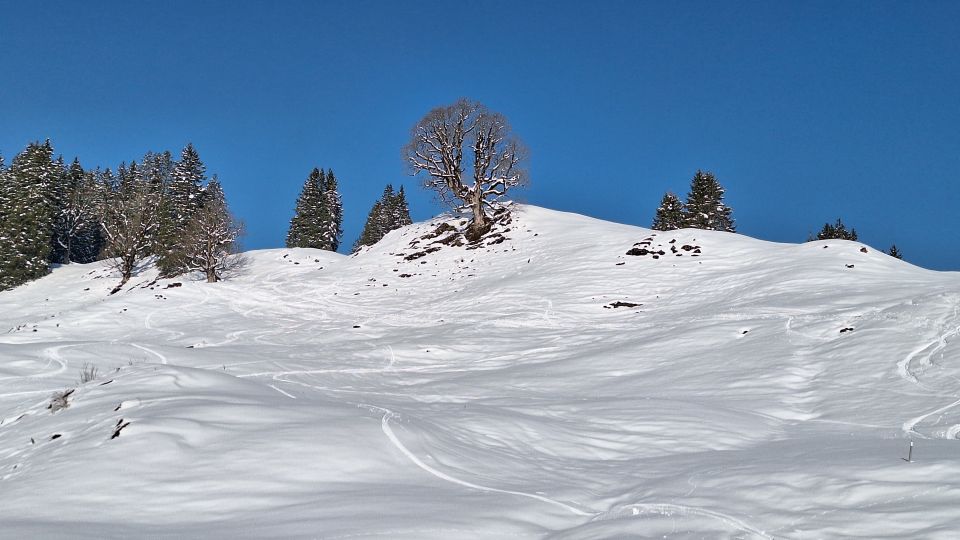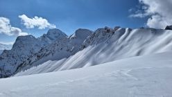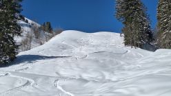 7:50 Uhr ab Parkplatz beim E-Werk (eigentlich Halte- und Parkverbot) war noch kein Auto da. Sehr angenehme Aufstiegsspur. Durchgehende Schneedecke im Aufstieg. Auf der Hochalpe (Gipfel) sind wir dann wieder umgekehrt. Abfahrt über den Steilhang der Hochalpe von wunderschön pulvrig allerdings nur bis ca. hm 1700. Danach zunehmend schwerer und nass. Ab der Gräsalpe ein paar Steine erwischt, durch den weichen Schnee ist man gleich am Untergrund. Auf der Forststraße mussten wir dann schon 3x die Ski ein Stück tragen.