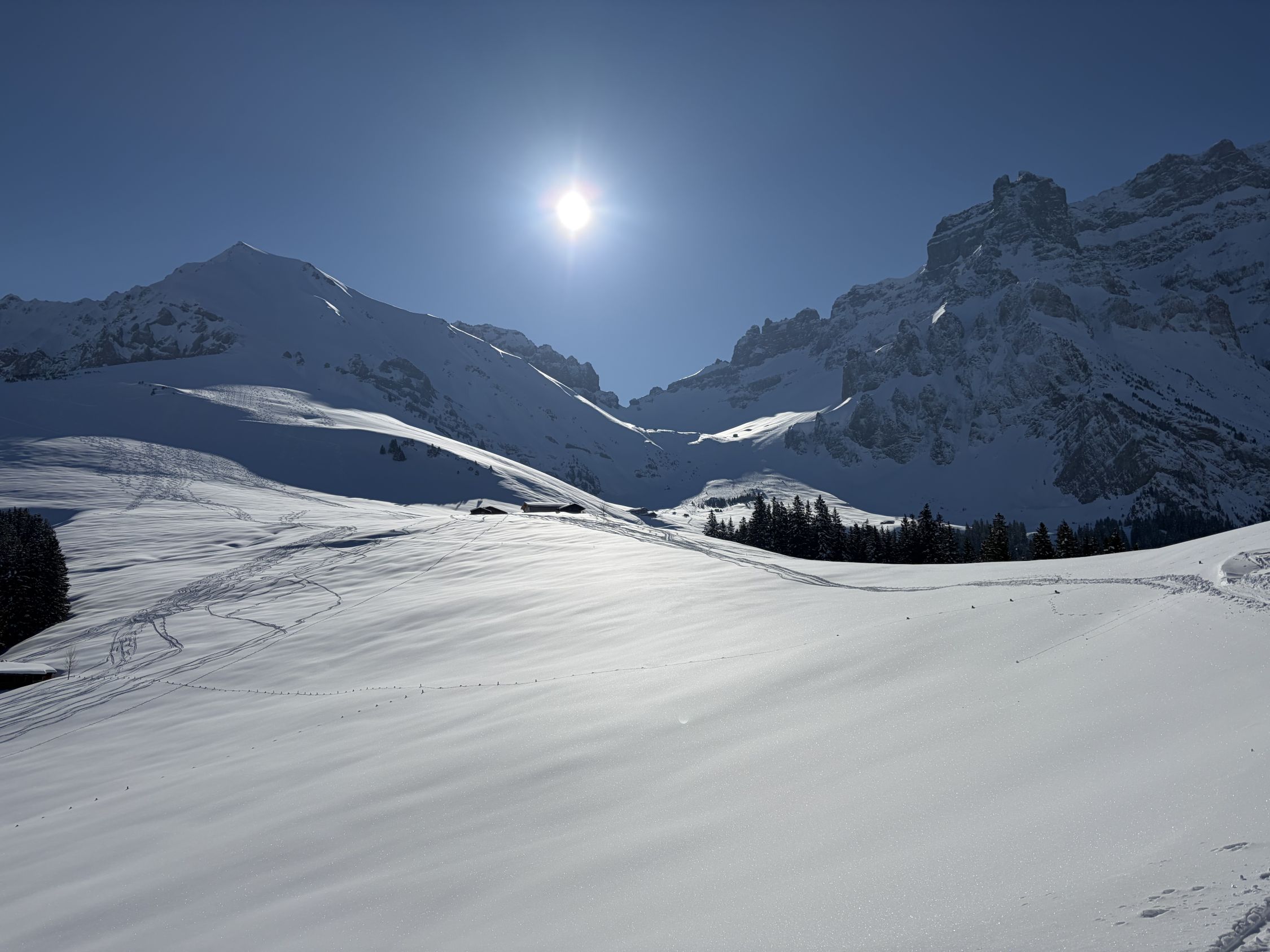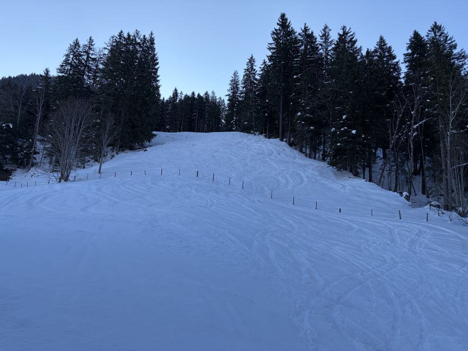 Um 9 los bei Challeweid, etwas ruppiger Aufstieg durch den Wald zu Brandegga, gute Spur bis auf den Gipfel. Abfahrt vom Gipfel um 13 Uhr: oben weich, unten schwer. Von Brandegga nicht in der Aufstiegspur sondern den vielen Spuren gefolgt durch den Ronigrabe zum P. 1279, dann zu Fuss zurück zur Margelibrücke.