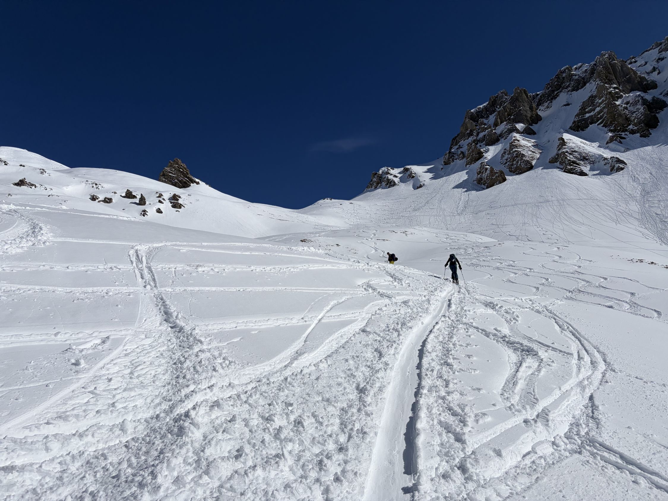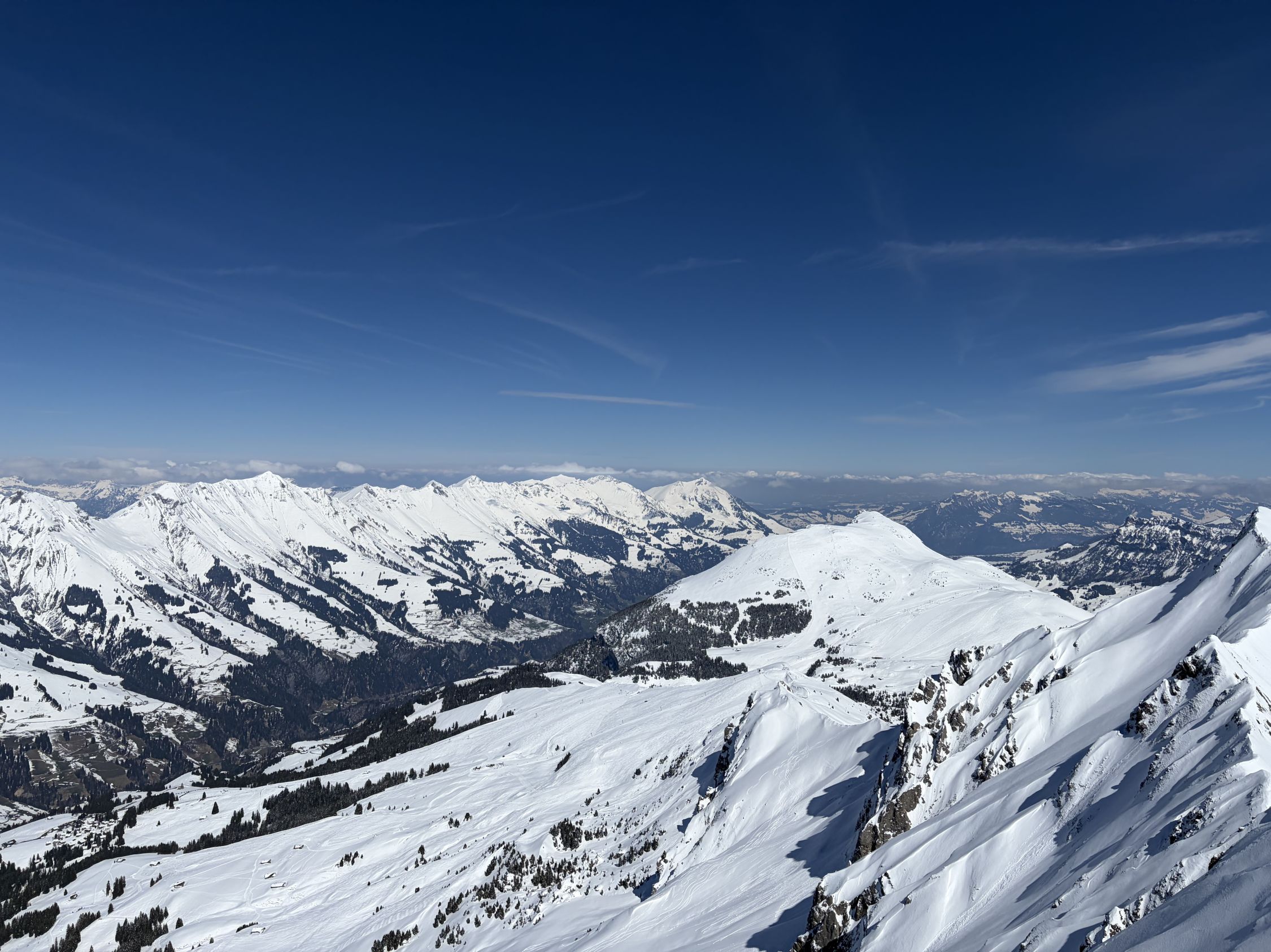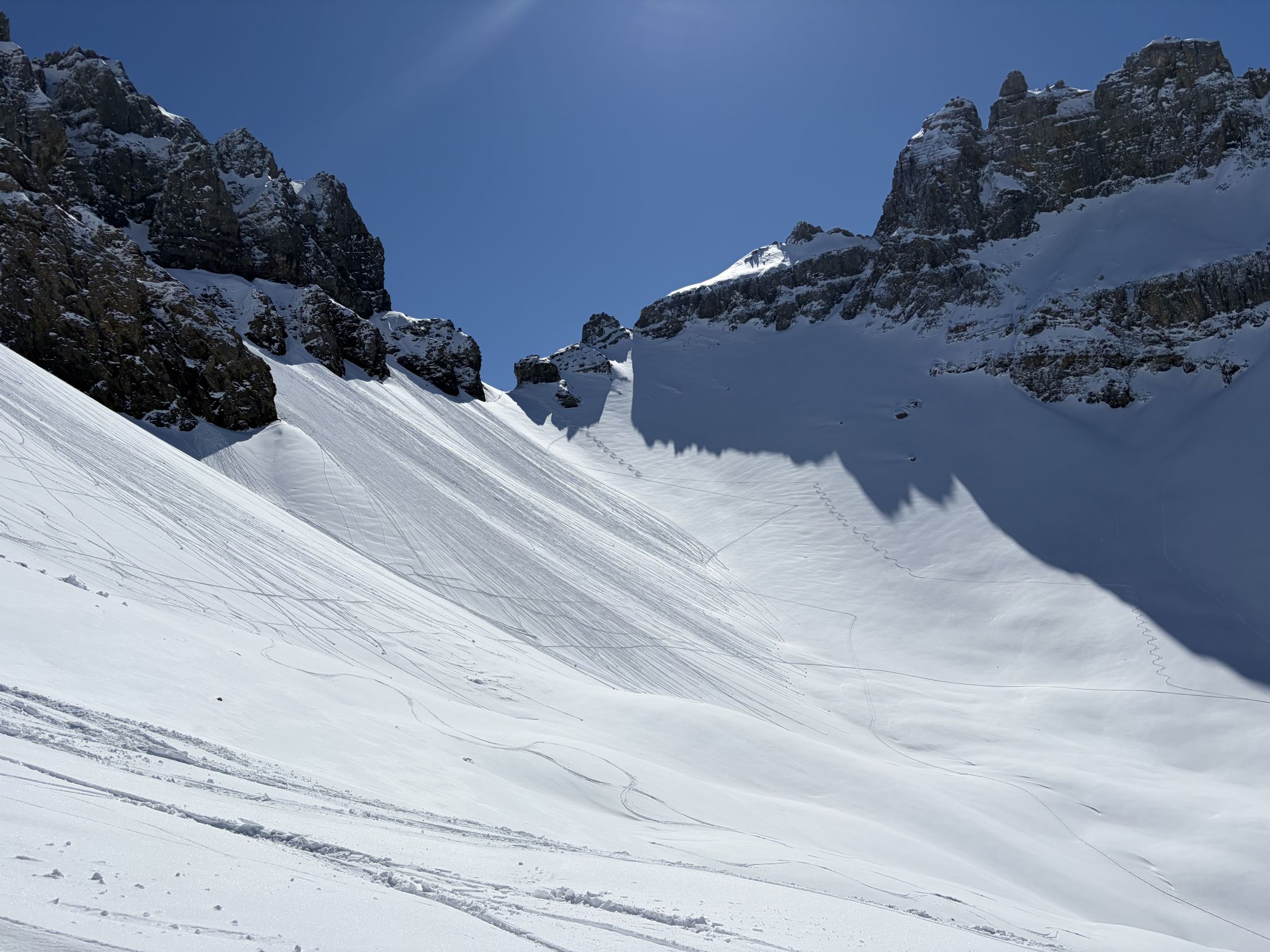 Hat noch viel Schnee, unten etwas Frühlings-Skifahren.