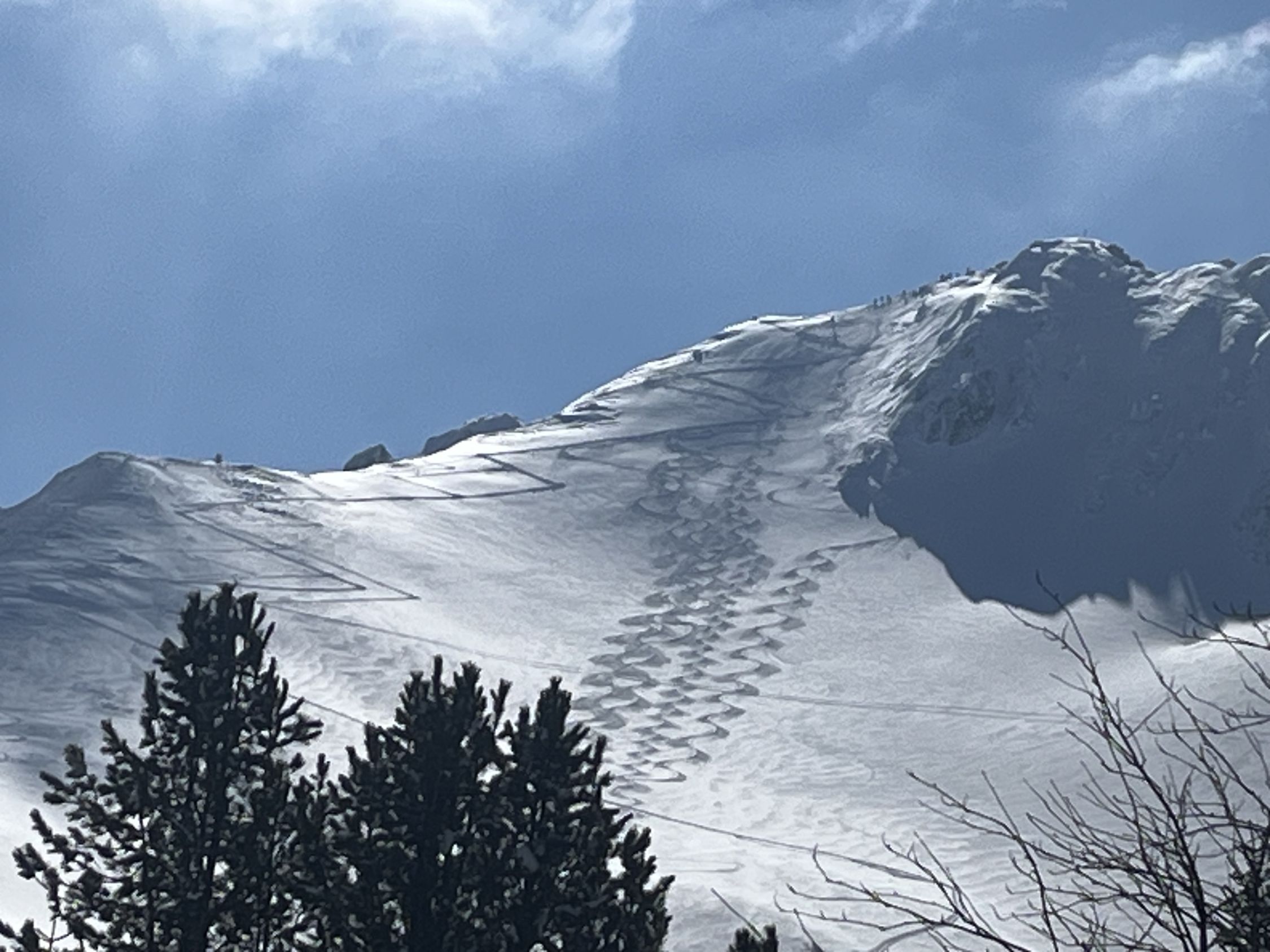 Am Nachmittag ging ein Schneebrett in der gesamten Bürgle Nordflanke runter; Anrisskante direkt unterhalb Einstieg.