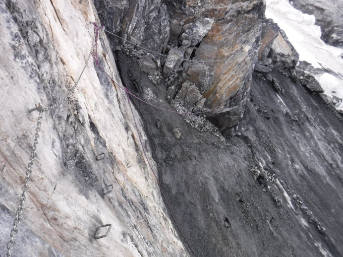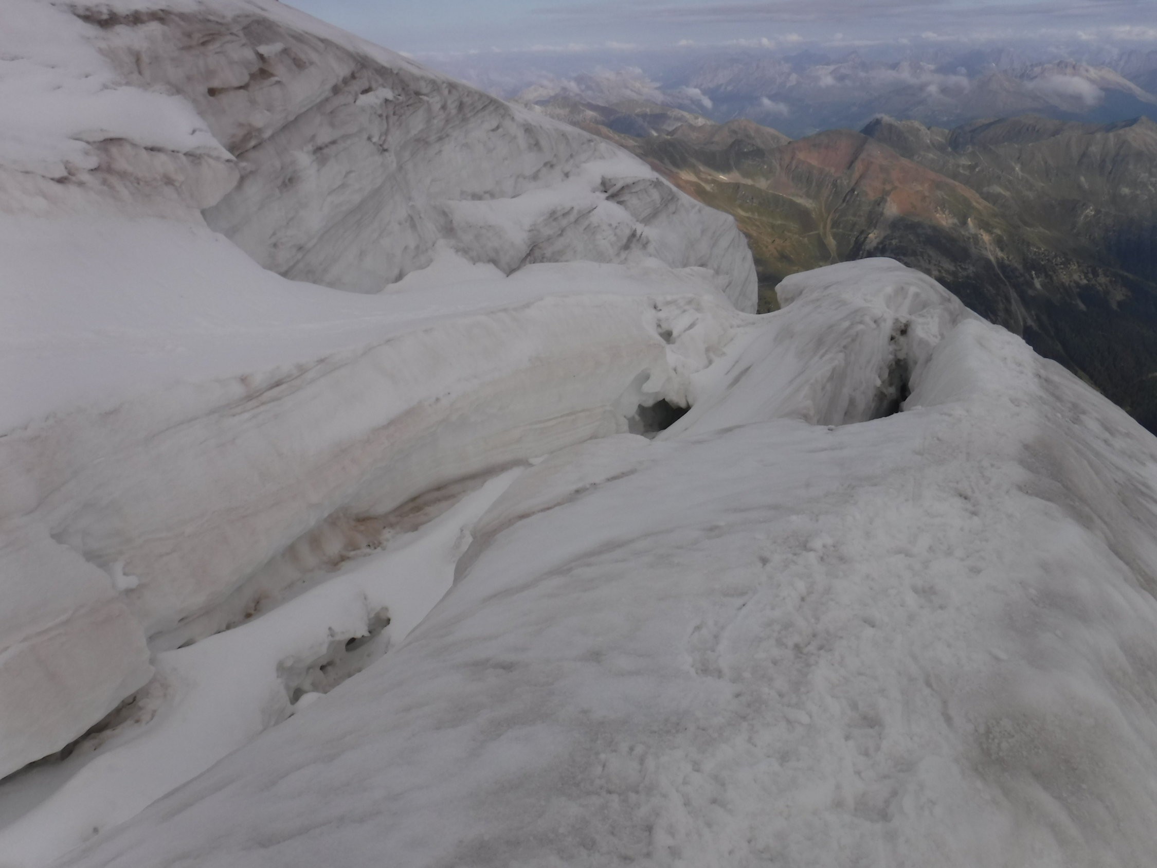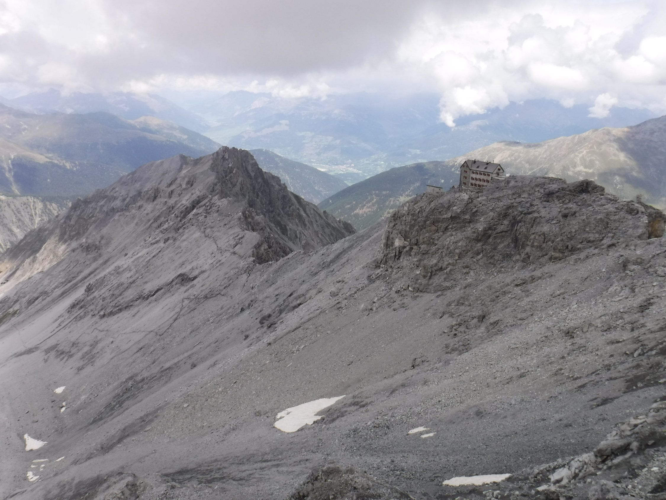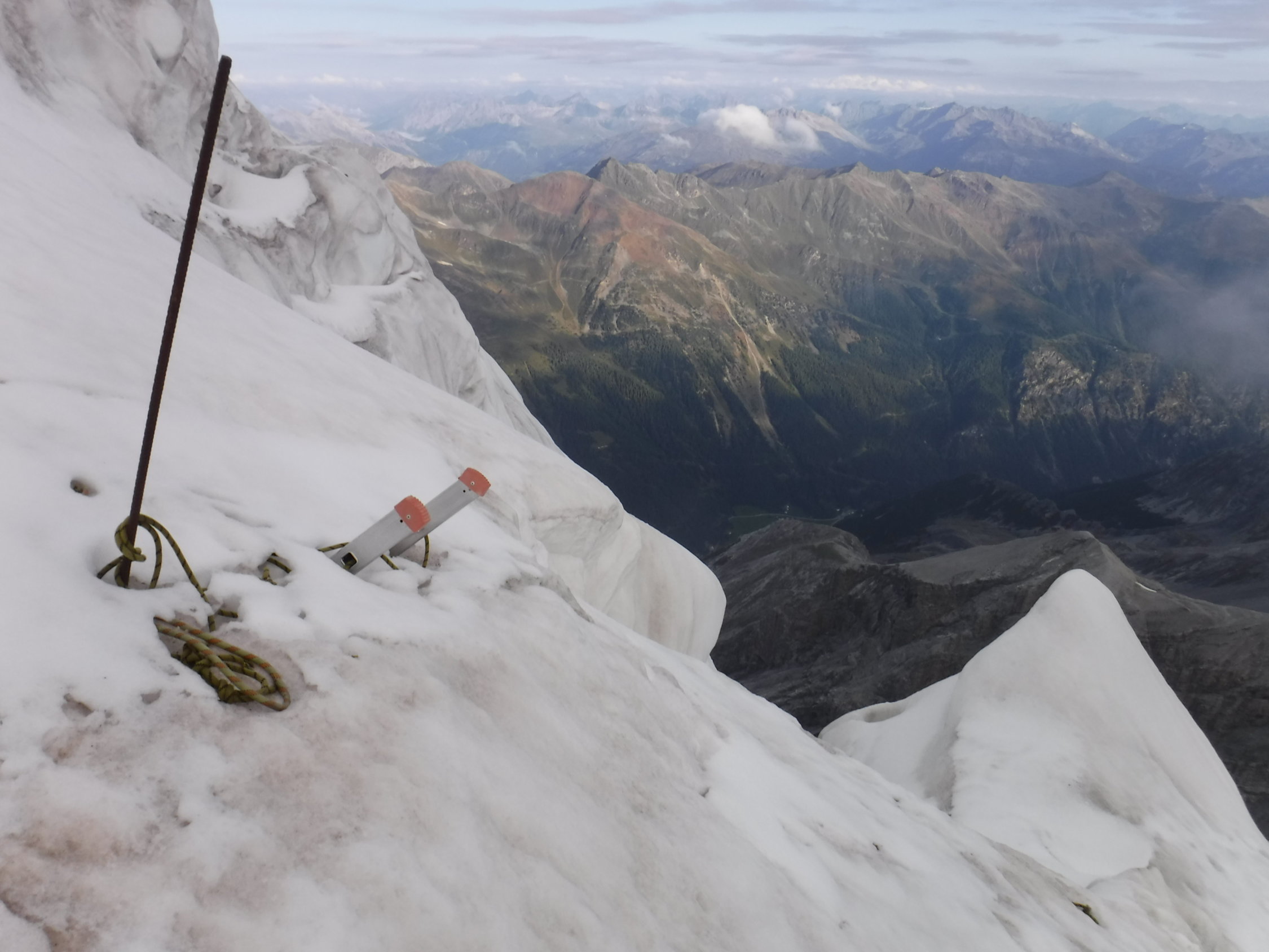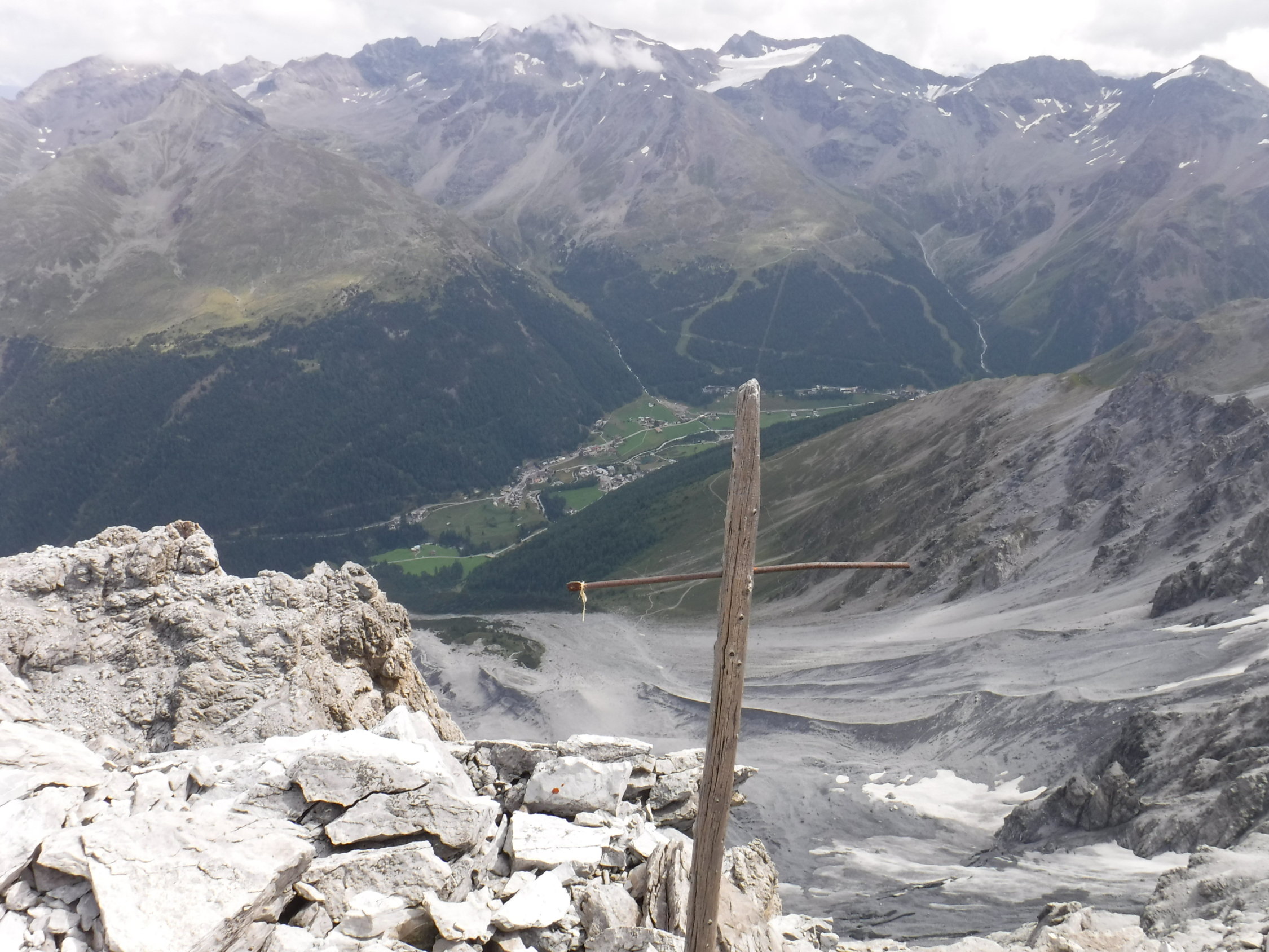 Im Aufstieg kamen mir ca. 60 Leute entgegen, einschl. der über den Hintergrat aufgestiegenen. Im Bereich der Felskletterei überholte ich 8 Leute, die um 05:00 Uhr von der Payer-Hütte starteten und mir im Abstieg auf dem Ortlerplatt entgegenkamen. Das Gipfelbuch ist vollgeschrieben und total durchnässt. Wer bringt ein neues mit ? Am Ende der Felsenkletterei traf ich an der Anseilstelle auf dem Gletscher auf drei 2er Seilschaften aus dem Val Mustair. Wir stiegen ziemlich zeitgleich über den Gletscher auf und ab. An etwas kritischer Eishangstelle unterhalb vom Biwak boten sie mir ihr Seil an zum abklettern. Vielen Dank ! Das sparte Zeit. Der Sessellift Langenstein fährt vom 15.6. bis 30.9. täglich von 08:30 bis 17:00 Uhr. Die Einzelfahrt kostet € 10,00 (Stand: 2019).
