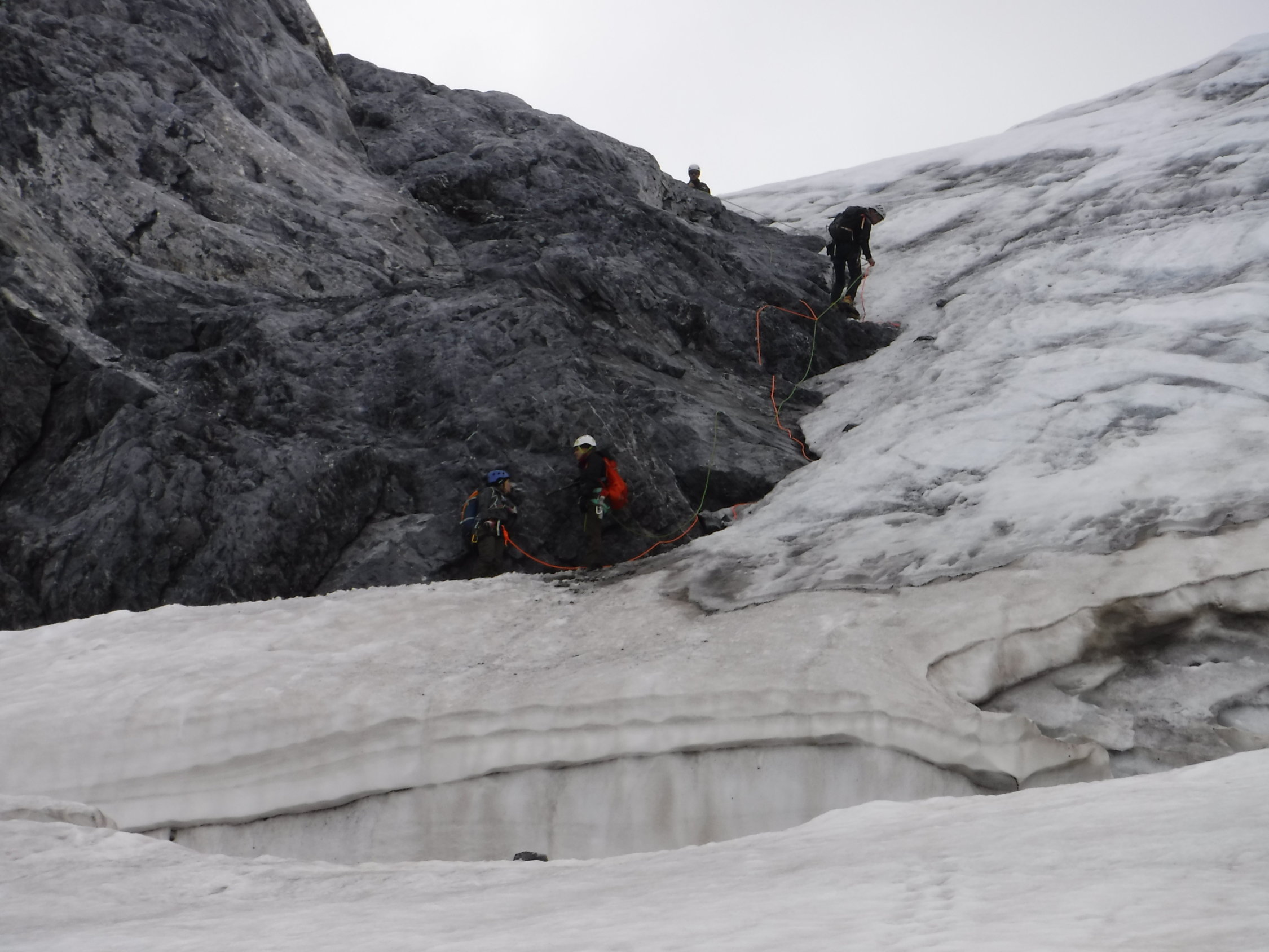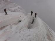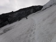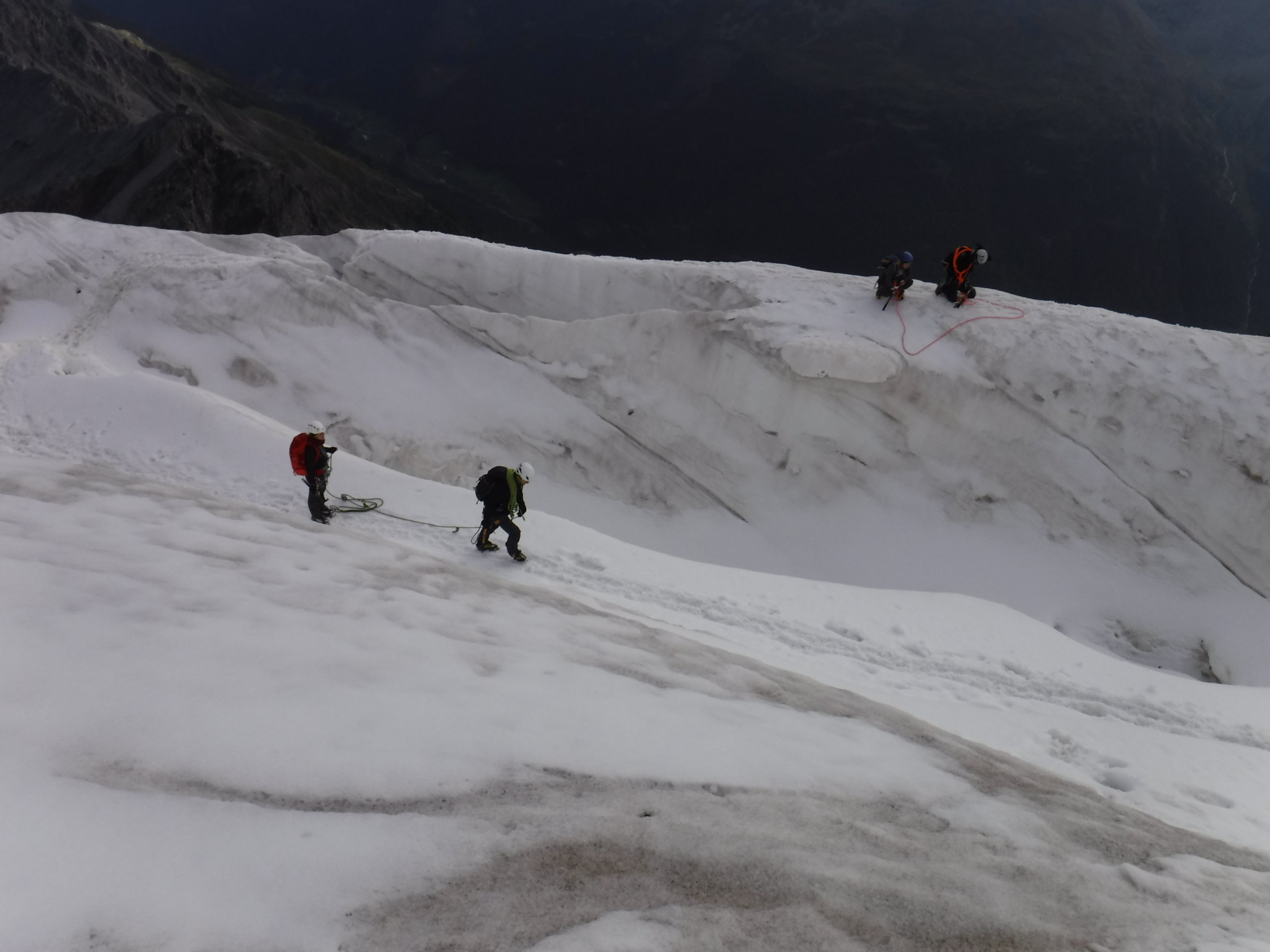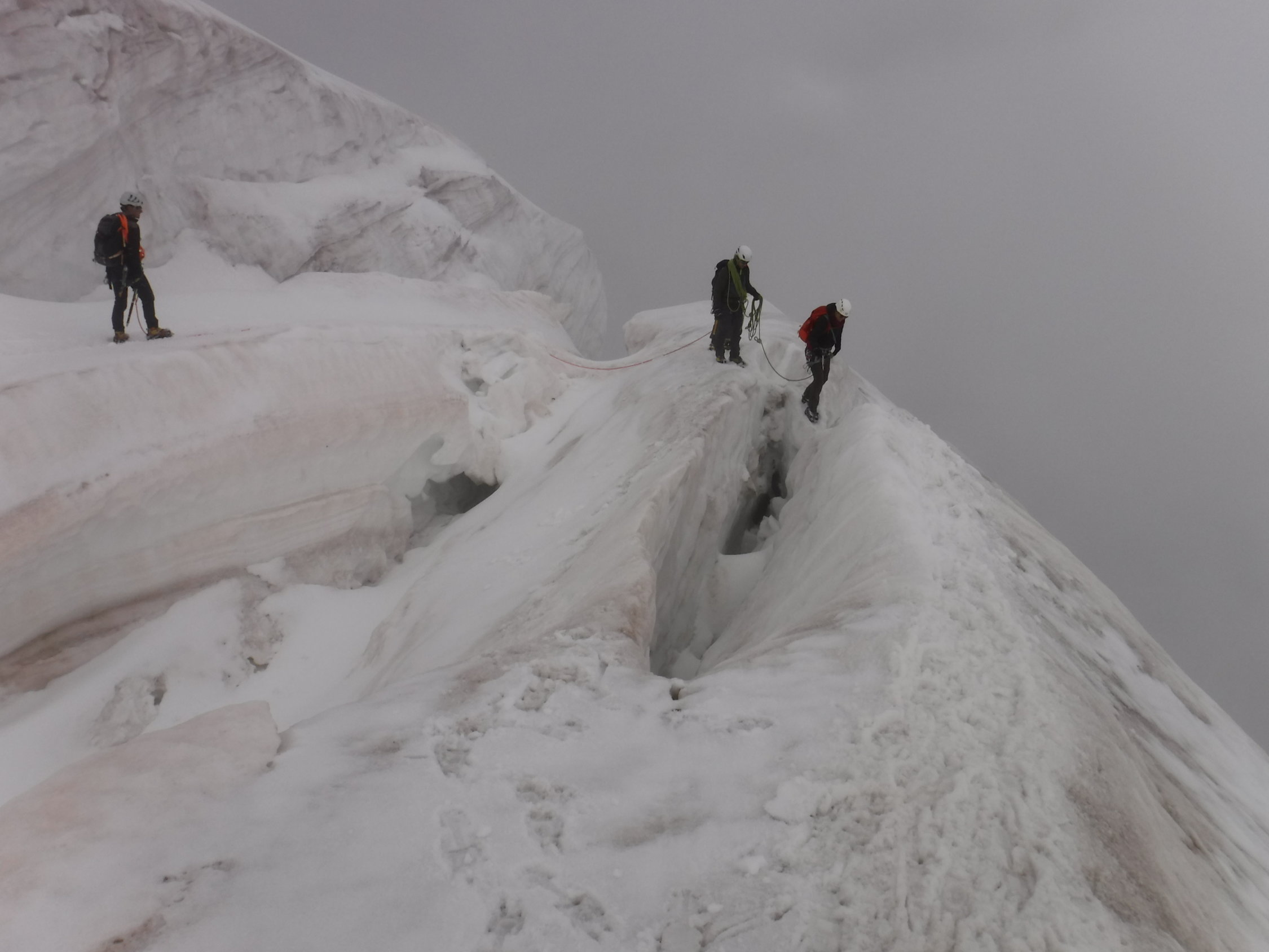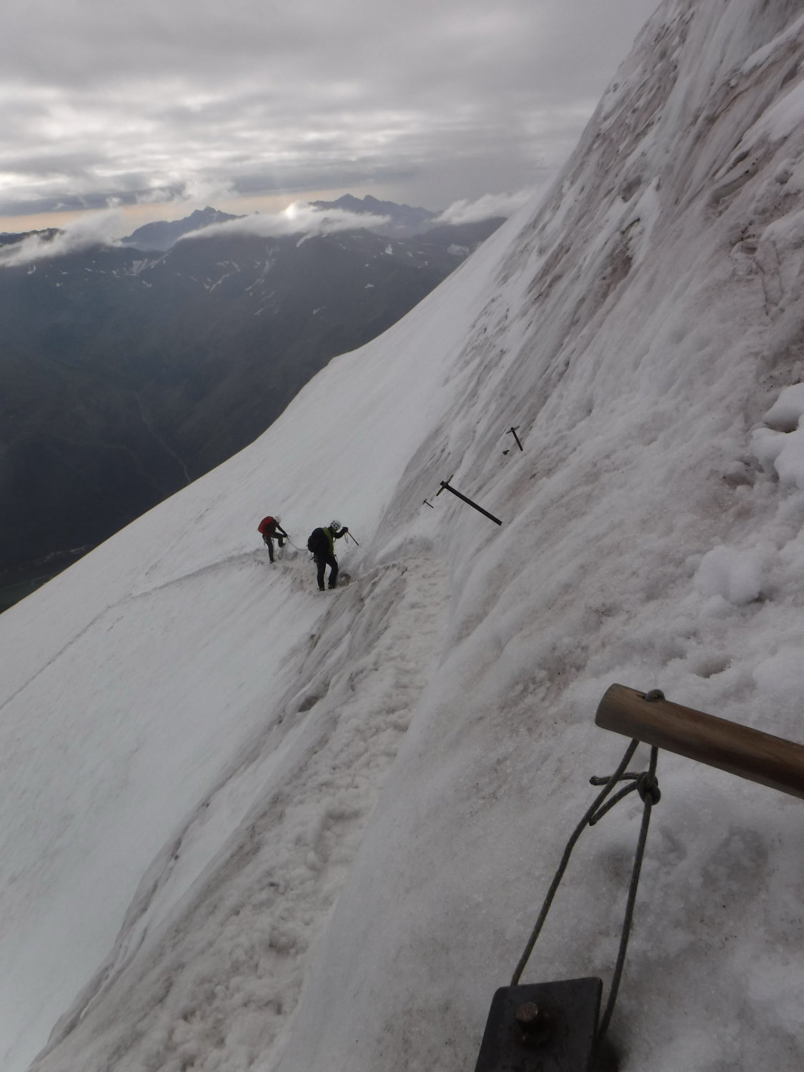 Tourenbeginn bei 9°C um 01:35 Uhr unter anfangs klarem Sternen-Himmel. Auf dem Gletscher dann keine Sicht mehr im Hochnebel.