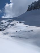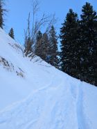 In der Abfahrt dann sehr nasser Schnee (ca 12-13 Uhr). Wird die nächsten Tage bestimmt nicht besser. Im Gegenteil wurde ich vermuten, dass bald erheblicher Bruchharsch besteht, der aber im Tagesverlauf dann tauen dürfte.