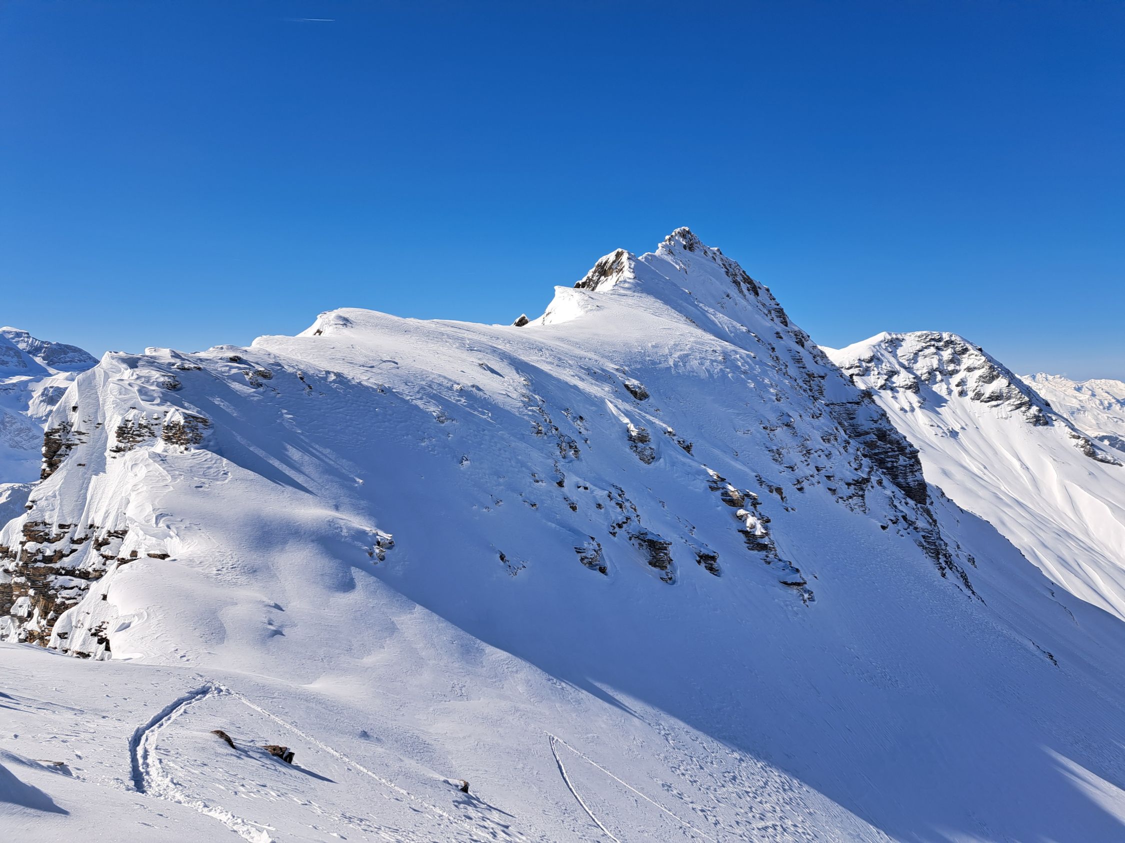 Heute einfach nur super mit herrlichem Pulverschnee ausser vom Wächte übergang bis Gipfel teils Windpresspulver