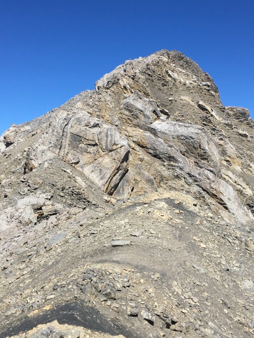 Start um 7.15 Uhr, Parkplatz Laschadura an der Ofenpasstrasse, 3 Grad, windstill. Angenehmer Aufstieg auf Wanderweg und Alpstrasse im Val Laschadura bis Alp. Nun auf Kuhwegen bis Höhe 2400 m und dann ziemlich geröllig Richtung Norden, einige Kalkfelsen umgehend die Südwestflanke zu P. 2895 hinauf. Nun dem Südostgrat folgen, eine Felswand links umgehen und dann steil ohne Schwierigkeiten zum Gipfel. Abstieg wie Aufstieg, T4plus.