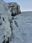 Bis auf eine Stelle ist die Route trocken. In der 7. SL (6a) muss man zwei Mal einen nassen Griff nehmen (siehe Bild unten), geht aber trotzdem gut.