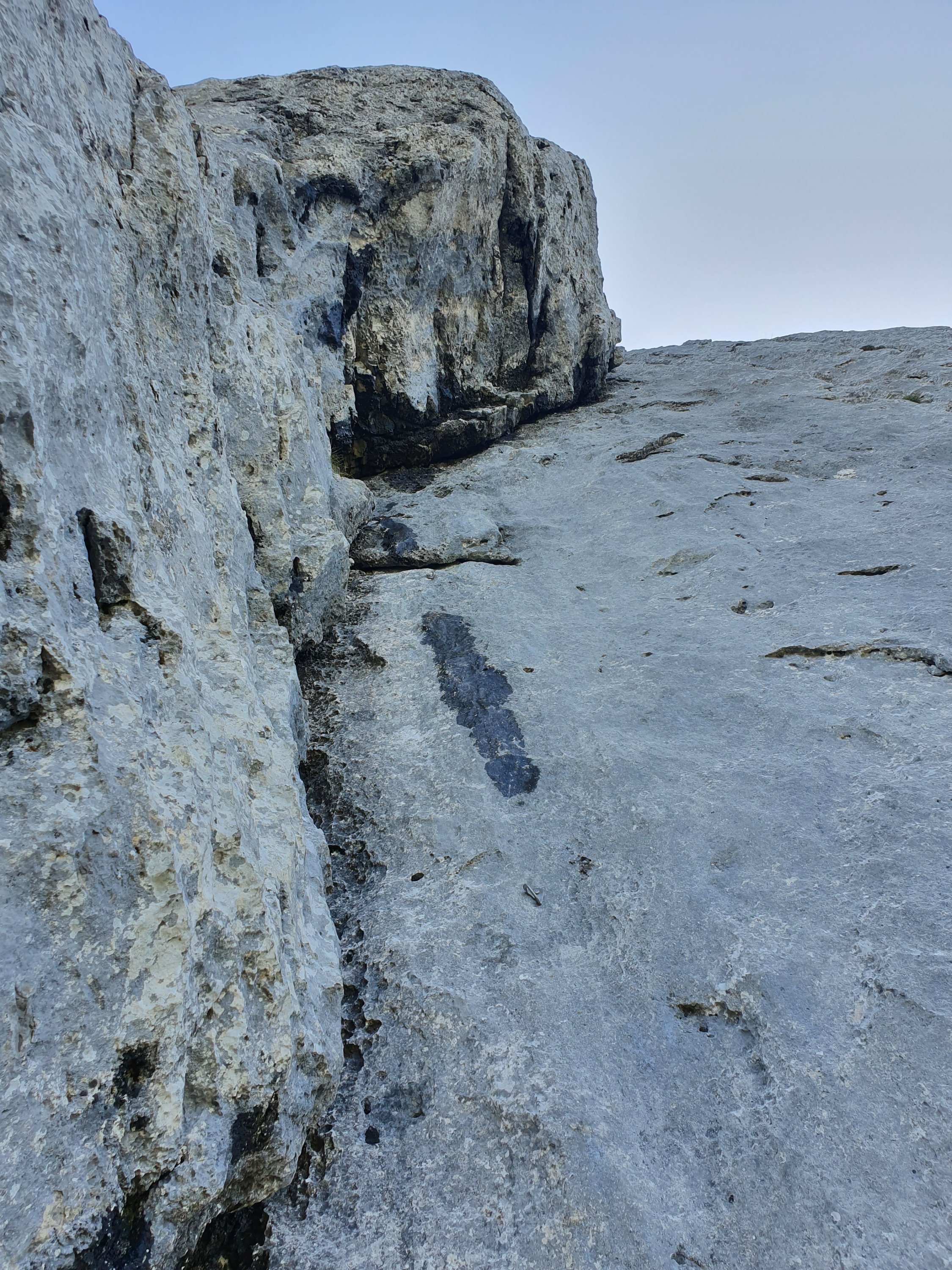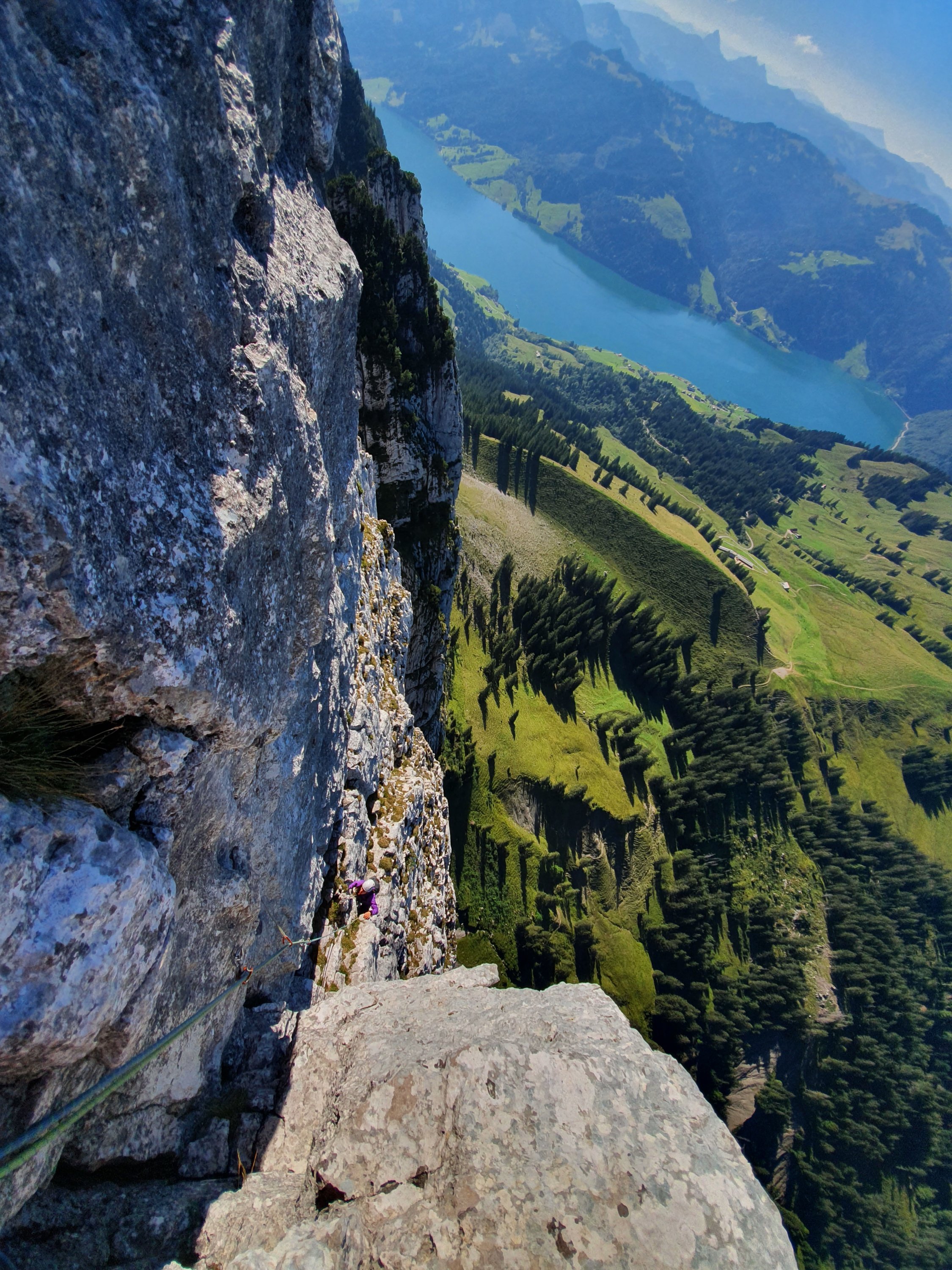 Schöne Kletterei, die vom Stil her eher an Granit als an Kalk erinnert. Die 6. SL (6a+) ist leider etwas abgespeckt und auch arg unterbewertet. 6c würde da besser passen. Die Absicherung ist "gut" mit BH. Wir haben gerade zwei mal einen Friend gelegt, wäre sicher auch ohne gegangen. Allerdings stecken an den einfachen Stellen die Haken weit auseinander.