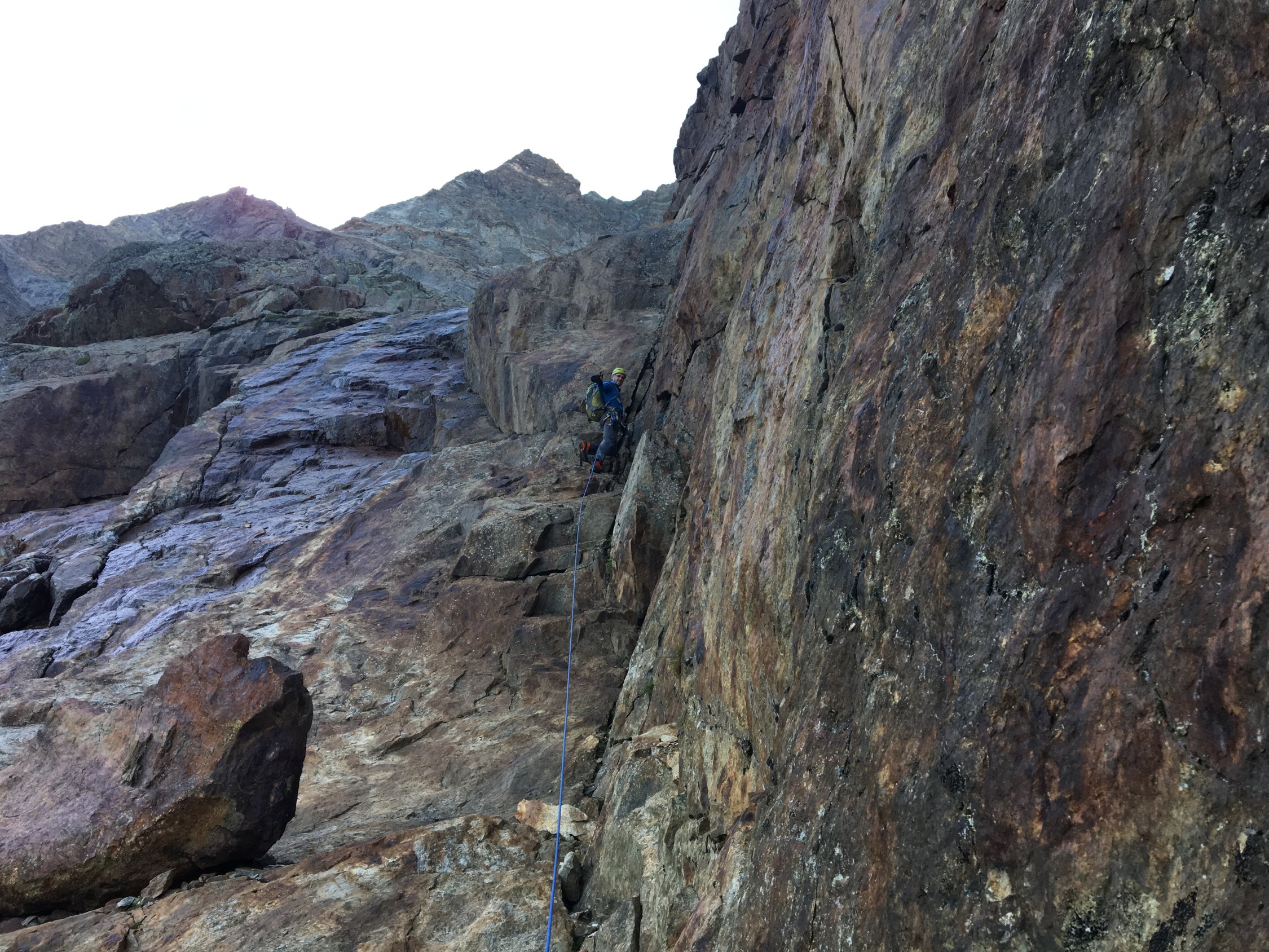 Der in manchen Beschreibungen erwähnte „brösmelige“ Bereich ist eine Folge der Plattentektonik. Zwischen 2700 m 2800 m ist eine Kalkschicht eingelagert die in der Auflösung begriffen ist. Etwa Rottalgrat-Feeling...