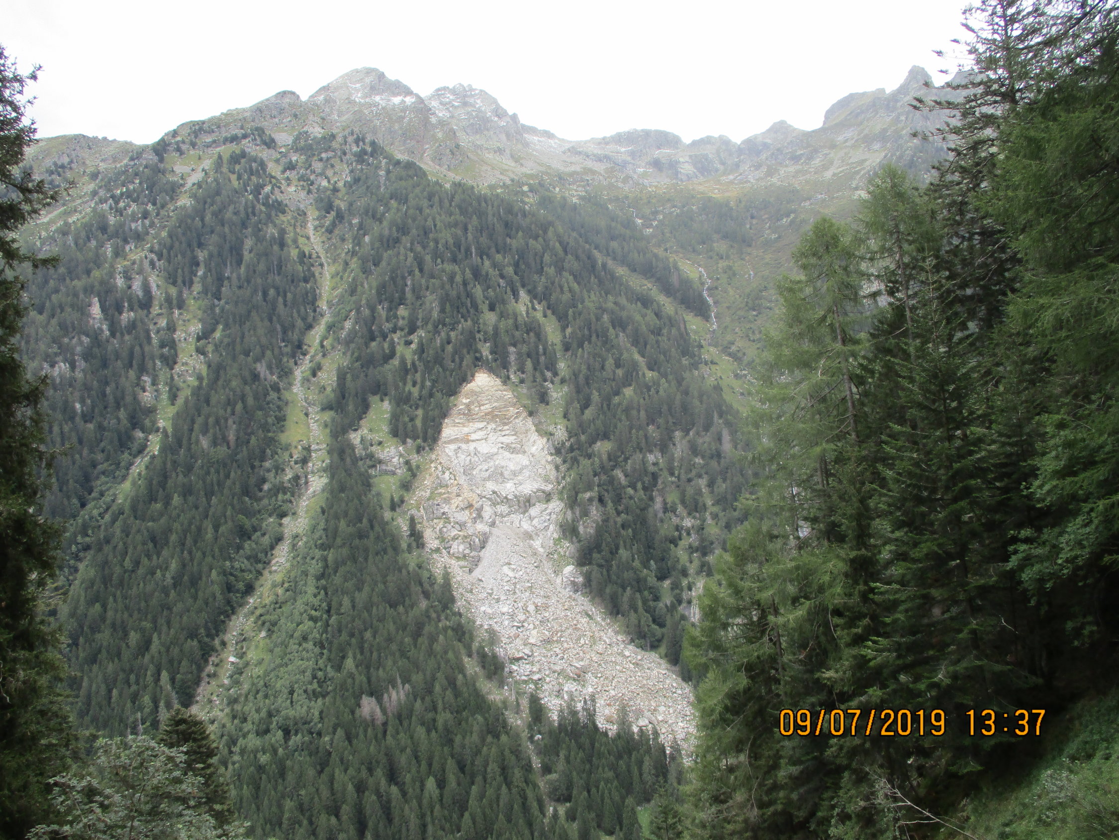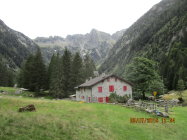 Bei der Anfahrt mit dem Postbus von Bellinzona her vermeldete die Wettervorhersage Regen für Sonntag. Zuhause las sich dies auf der ZAMG-Seite noch widersprüchlich. Mein Entschluss stand damit fest: ich möchte nach Ankunft beim Lago Cama unbedingt noch auf den Pizzo Paglia steigen. Im besten Fall würde ich Sonntag dann mit zwei neuen Gipfel heimreisen, oder eben bei Regenwetter gemütlich das Val Cama wieder hinunterwandern. Letzterer Fall traf ein. Bereits in den frühen Morgenstunden, noch im Bett in der gemütlichen Capanna Righetti-Fibbiola liegend, hörte ich schon den Regen aufs Vordach prasseln. Daran änderte sich auch während des Frühstücks nicht, die erhöhre Luftfeuchtigkeit blieb mir dann auch im Abstieg nach Cama erhalten. Die Schneefallgrenze ging dabei gegen 1800 m.