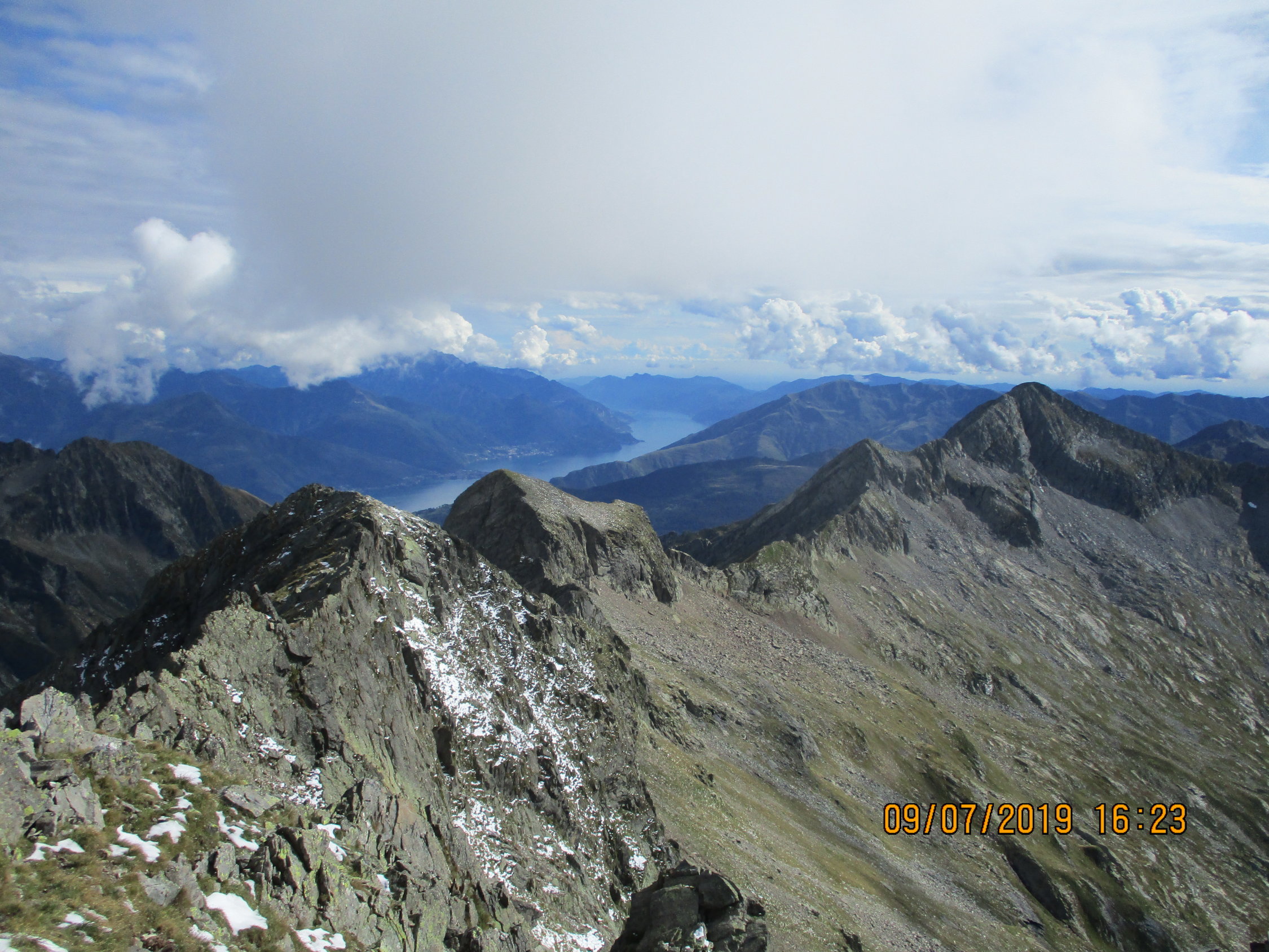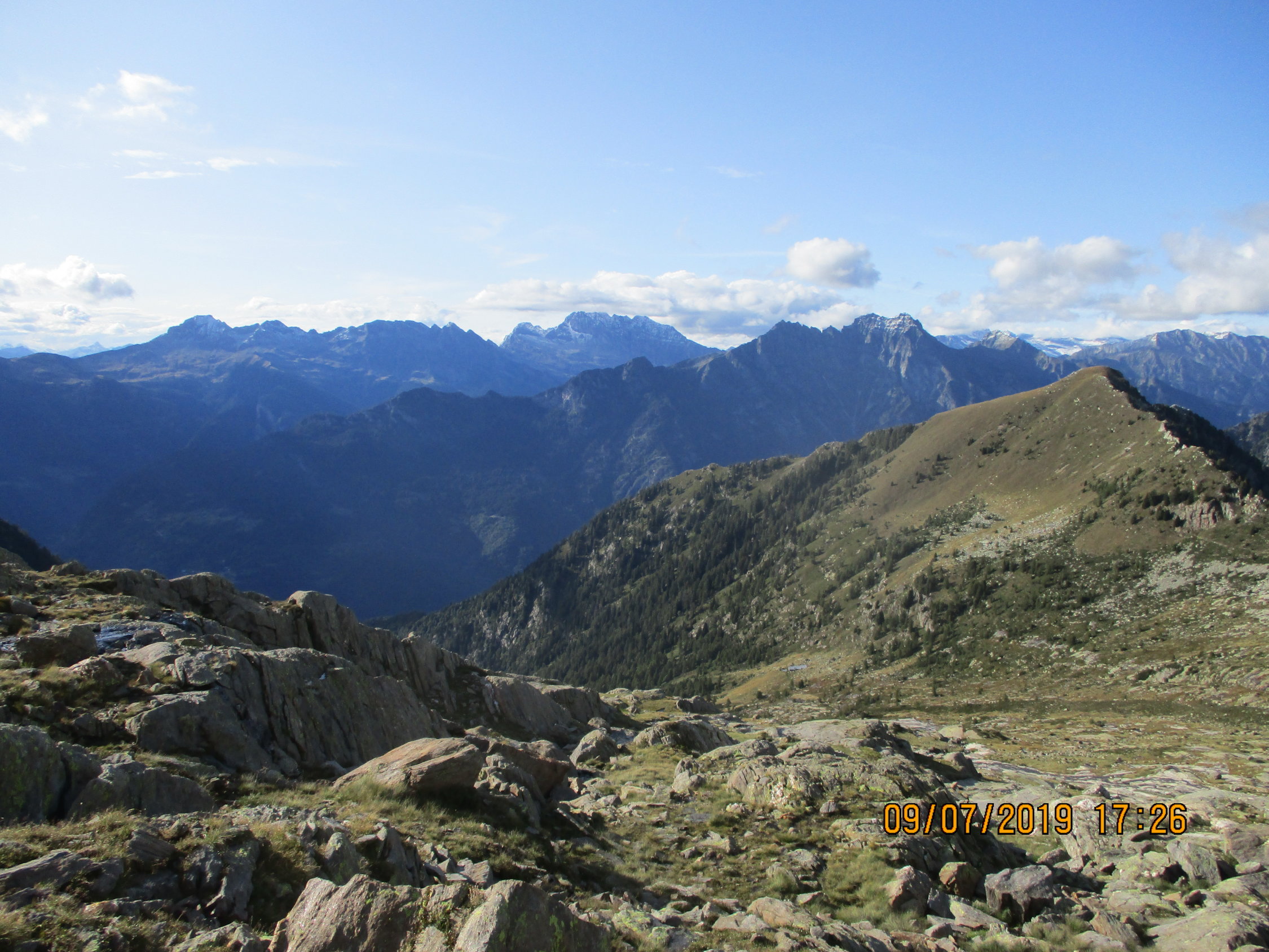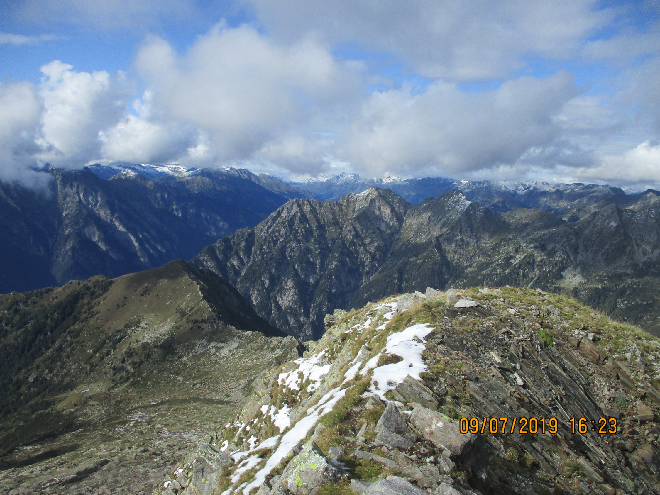 Der Samstag zeigte sich heiter bis wolkig. Im Anstieg zum Paglia tröpfelte es mal leicht, und der Blick gen Norden ließ zunächst Schlimmeres befürchten. Dem war schlussendlich nicht so, es blieb nicht nur trocken, es wurde auf den Abend hin sogar noch wunderbar sonnig. Tolle Ausblicke auf dem Gipfel und während des Abstiegs. Kurz vor dem Servieren des Abendessens erreichte ich gegen 19.15 h schließlich wieder die Hütte.